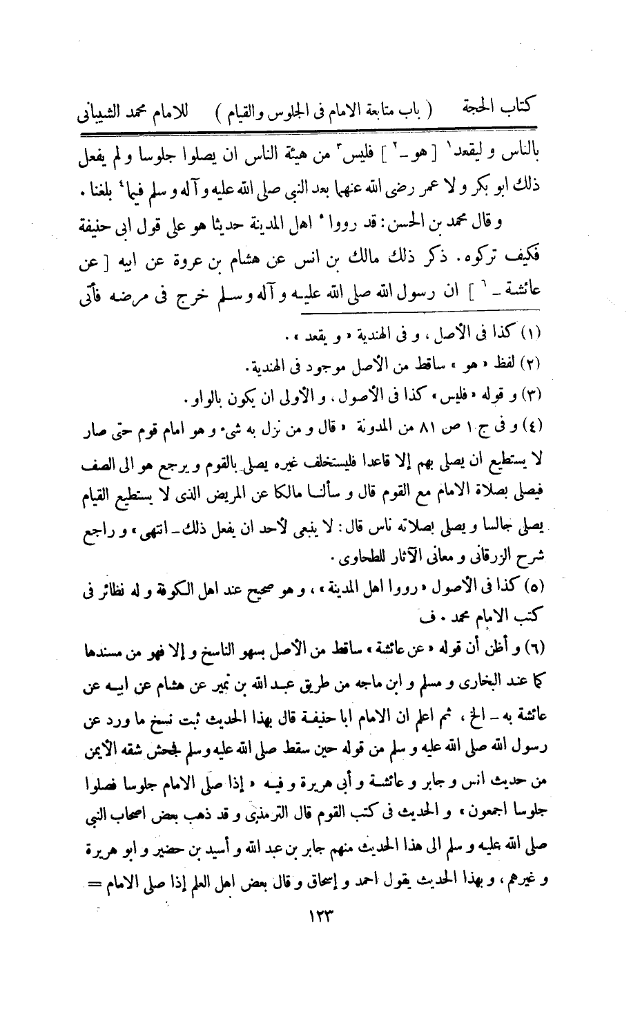 وَقَالَ مُحَمَّد بن الْحسن قد رووا اهل الْمَدِينَة حَدِيثا هُوَ على قَول ابي حنيفَة فَكيف تَرَكُوهُ ذكر ذَلِك مَالك بن انس عَن هِشَام بن عُرْوَة عَن ابيه (عَن عَائِشَة) ان رَسُول الله صلى الله عَلَيْهِ واله وَسلم خرج فِي مَرضه فَأتى