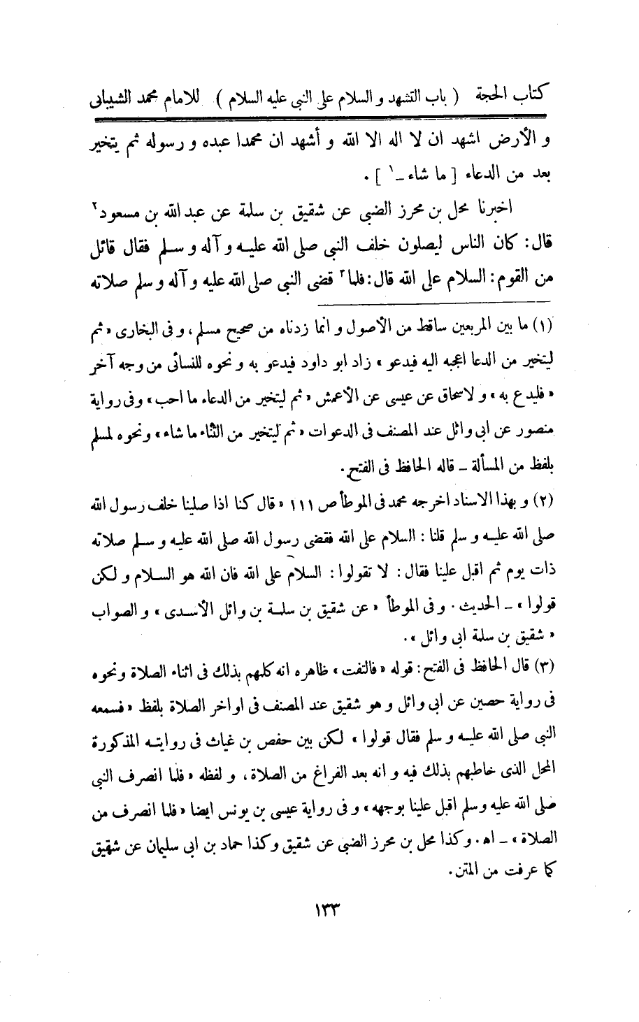 اُخْبُرْنَا مَحل بن مُحرز الضَّبِّيّ عَن شَقِيق بن سَلمَة عَن عبد الله بن مَسْعُود قَالَ كَانَ النَّاس ليصلون خلف النَّبِي صلى الله عَلَيْهِ وَسلم فَقَالَ قَائِل من الْقَوْم السَّلَام على الله قَالَ فَلَمَّا قضى النَّبِي صلى الله عَلَيْهِ وَسلم صلَاته