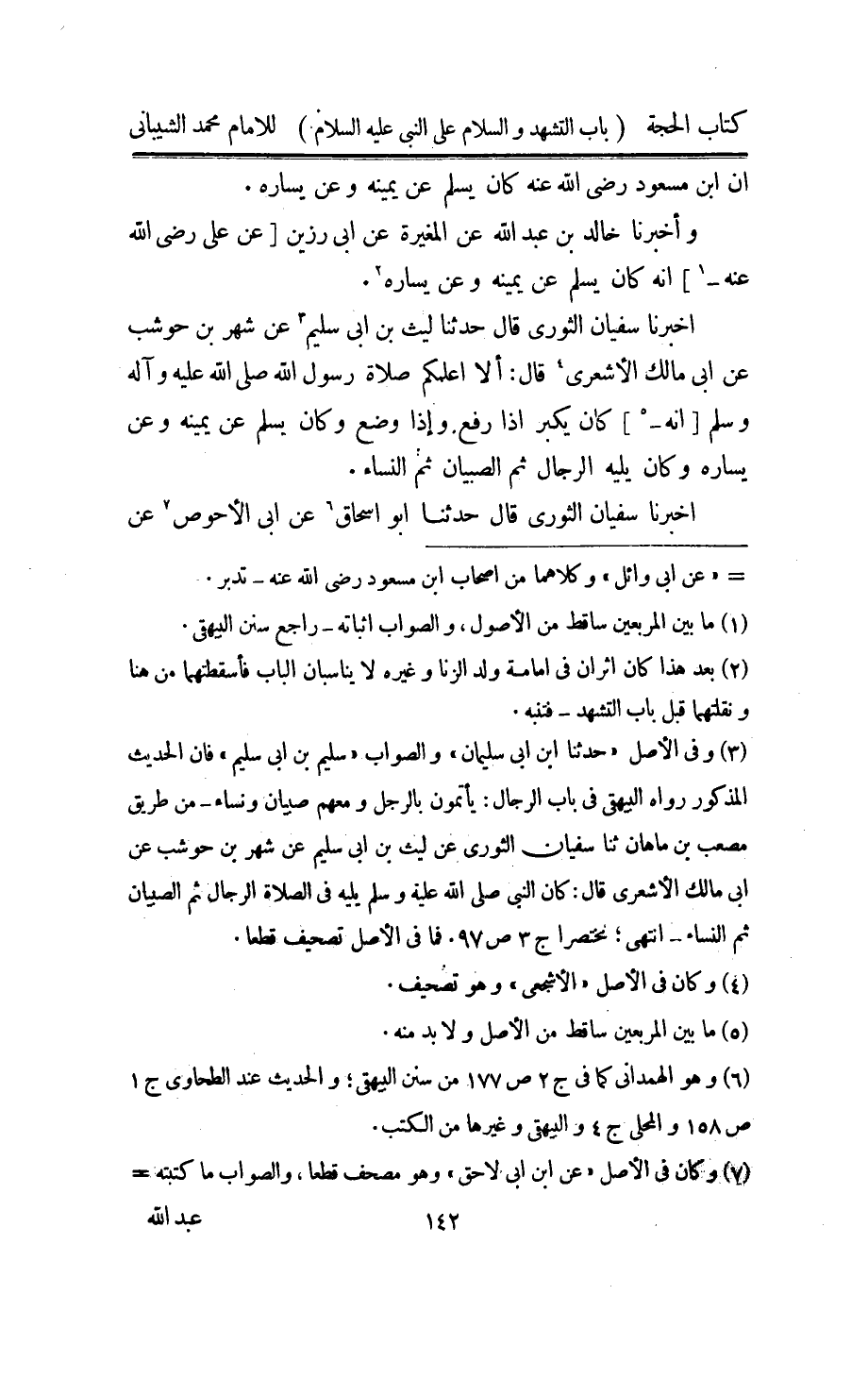 ان ابْن مَسْعُود رَضِي الله عَنهُ كَانَ يسلم عَن يَمِينه وَعَن يسَاره