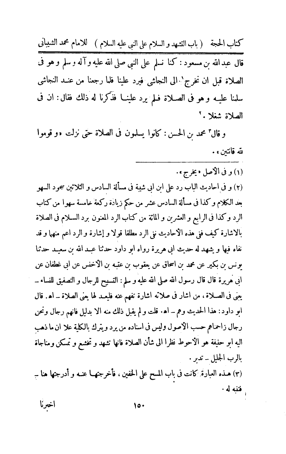 وَقَالَ مُحَمَّد بن الْحسن كَانُوا يسلمُونَ فِي الصَّلَاة حَتَّى نزلت {وَقومُوا لله قَانِتِينَ}