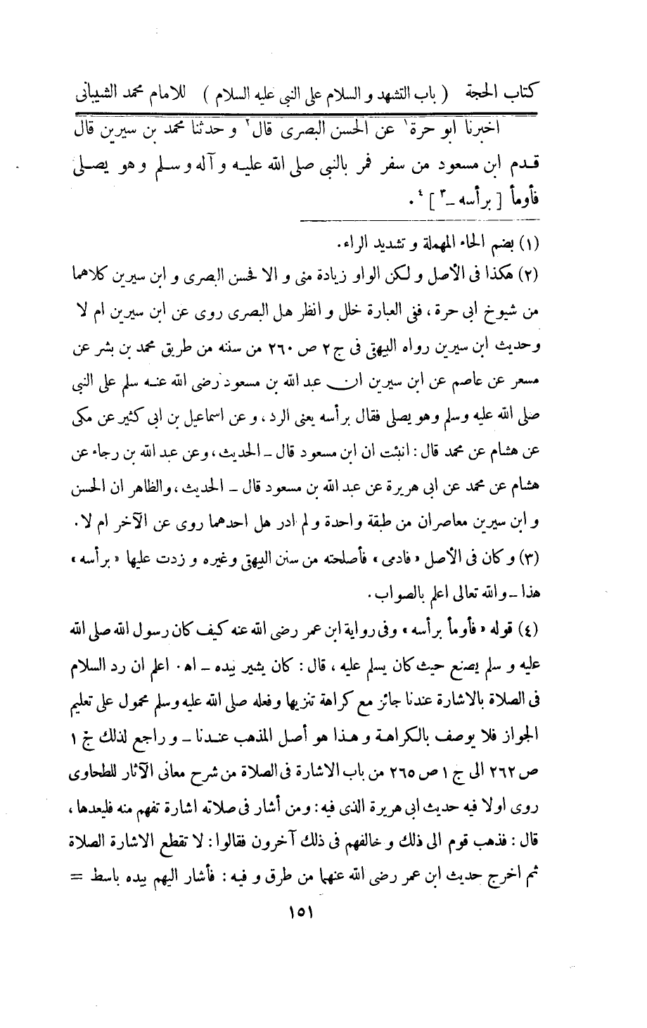 اُخْبُرْنَا ابو حرَّة عَن الْحسن الْبَصْرِيّ قَالَ وَحدثنَا مُحَمَّد بن سِيرِين قَالَ قدم ابْن مَسْعُود من سفر فَمر بِالنَّبِيِّ صلى الله عَلَيْهِ وَسلم وَهُوَ يُصَلِّي فَأَوْمأ براسه