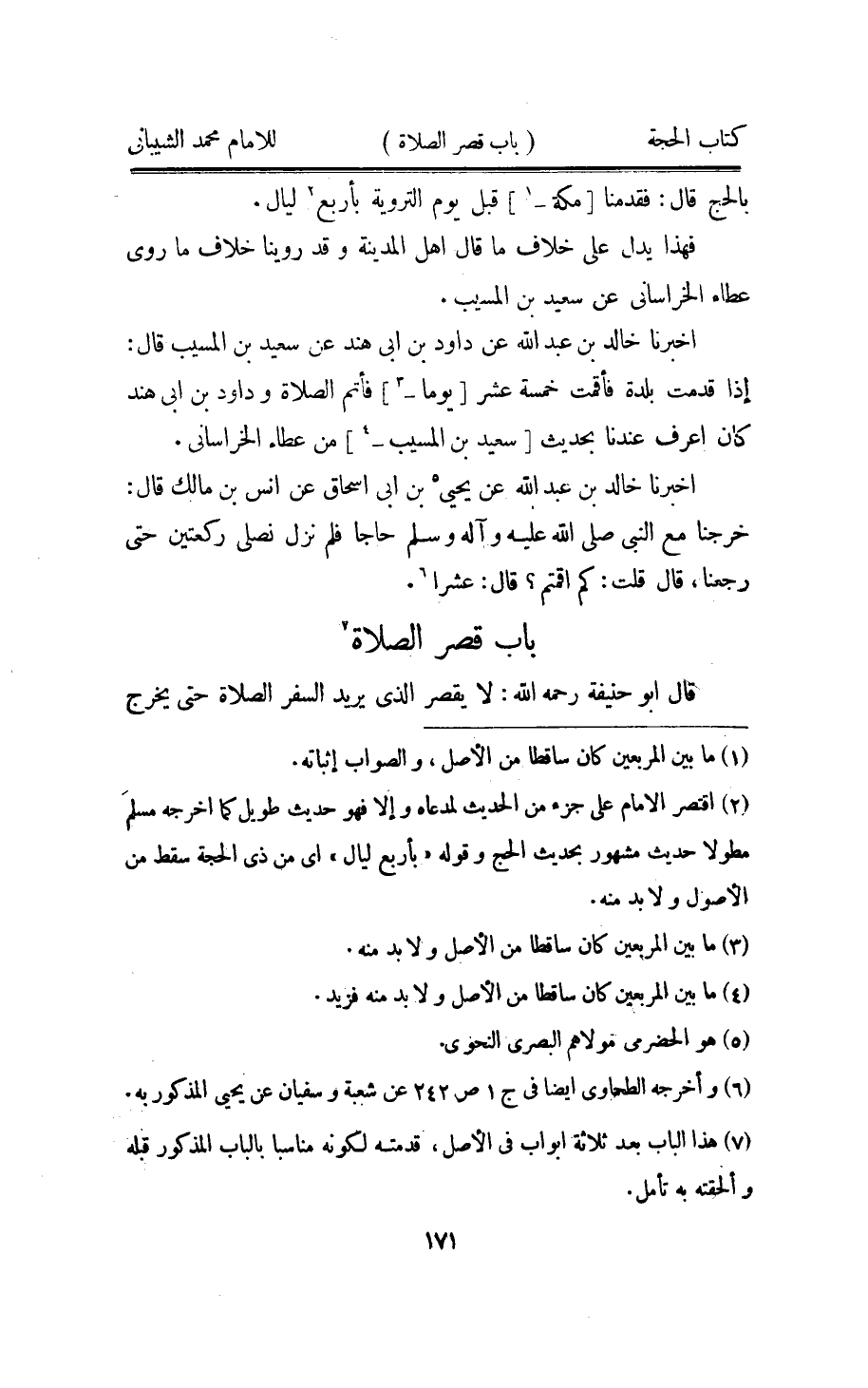 اُخْبُرْنَا بن عبد الله عَن دَاوُد بن ابي هِنْد عَن سعيد بن الْمسيب قَالَ اذا قدمت بَلْدَة فاقمت خَمْسَة عشر (يَوْمًا) فاتم الصَّلَاة وَدَاوُد بن ابي هِنْد كَانَ اعرف عندنَا بِحَدِيث (سعيد بن الْمسيب) من عَطاء الخرساني