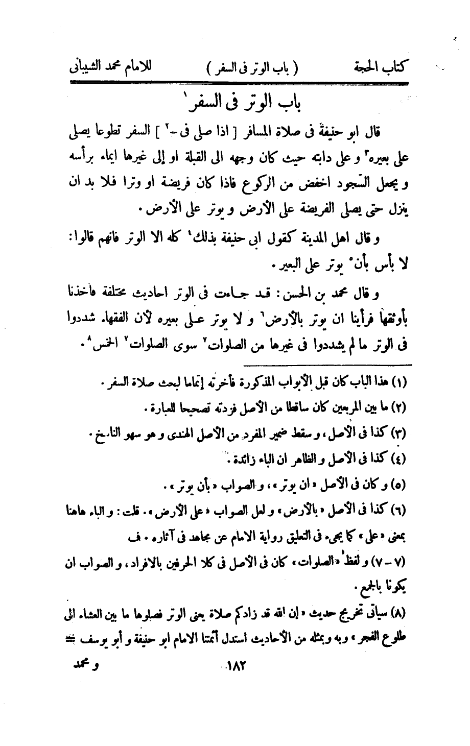 وَقَالَ مُحَمَّد بن الْحسن قد جَاءَت فِي الْوتر احاديث مُخْتَلفَة فاخذنا بأوثقها فراينا ان يُوتر بالارض وَلَا يُوتر على بعيره لَان الْفُقَهَاء شَدَّدُوا فِي الْوتر مَا لم يشددوا فِي غَيرهَا من الصَّلَوَات سوى الصَّلَوَات الْخمس