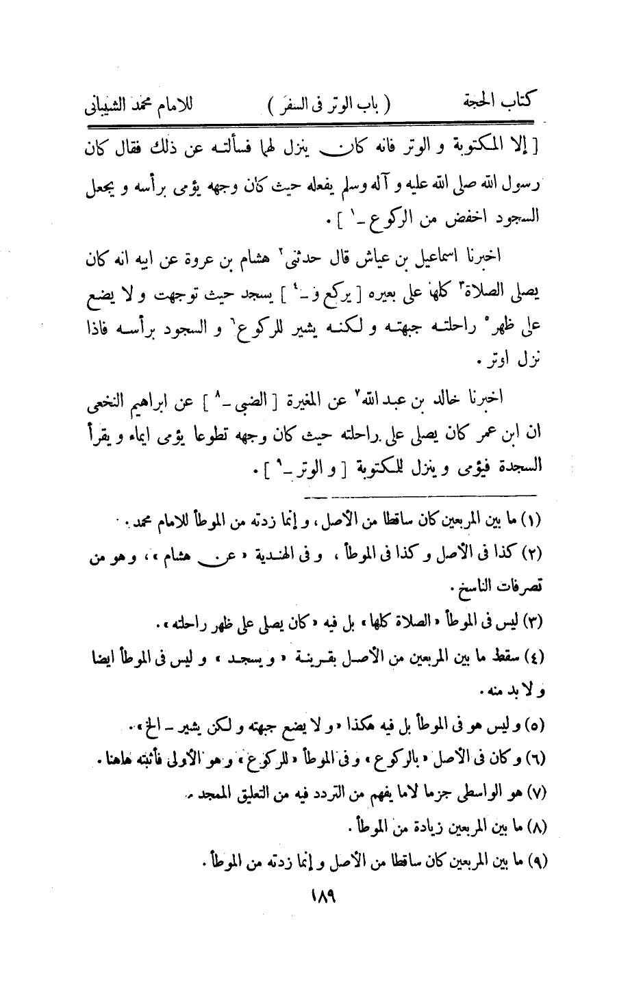 اُخْبُرْنَا خَالِد بن عبد الله عَن الْمُغيرَة الضَّبِّيّ عَن ابراهيم النَّخعِيّ ان ابْن عمر كَانَ يُصَلِّي على رَاحِلَته حَيْثُ كَانَ وحهه تَطَوّعا يؤمي ايماء ويقرا السَّجْدَة فيؤمي وَينزل للمكتوبة وَالْوتر