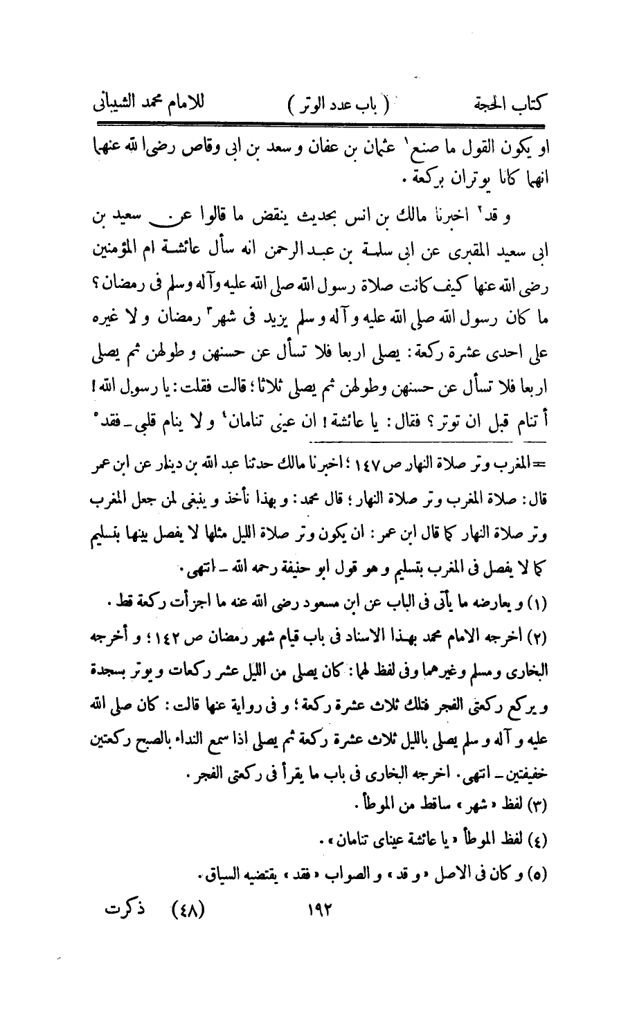 وَقد اُخْبُرْنَا مَالك بن انس بِحَدِيث ينْقض مَا قَالُوا عَن سعيد بن ابي سعيد المَقْبُري عَن ابي سَلمَة بن عبد الرَّحْمَن انه سَالَ عَائِشَة ام الْمُؤمنِينَ رَضِي الله عَنْهَا كَيفَ كَانَت صَلَاة رَسُول الله صلى الله عَلَيْهِ واله وَسلم فِي رَمَضَان مَا كَانَ رَسُول الله صلى الله عَلَيْهِ واله وَسلم يزِيد فِي شهر رَمَضَان وَلَا غَيره على احدى عشرَة رَكْعَة يُصَلِّي اربعا فَلَا تسال عَن حسنهنَّ وطولهن ثمَّ يُصَلِّي اربعا فَلَا تسال عَن حسنهنَّ وطولهن ثمَّ يُصَلِّي ثَلَاثًا قَالَت فَقلت يَا رَسُول الله اتنام قبل ان توتر فَقَالَ يَا عَائِشَة ان عَيْني تنامان وَلَا ينَام قلبِي فقد