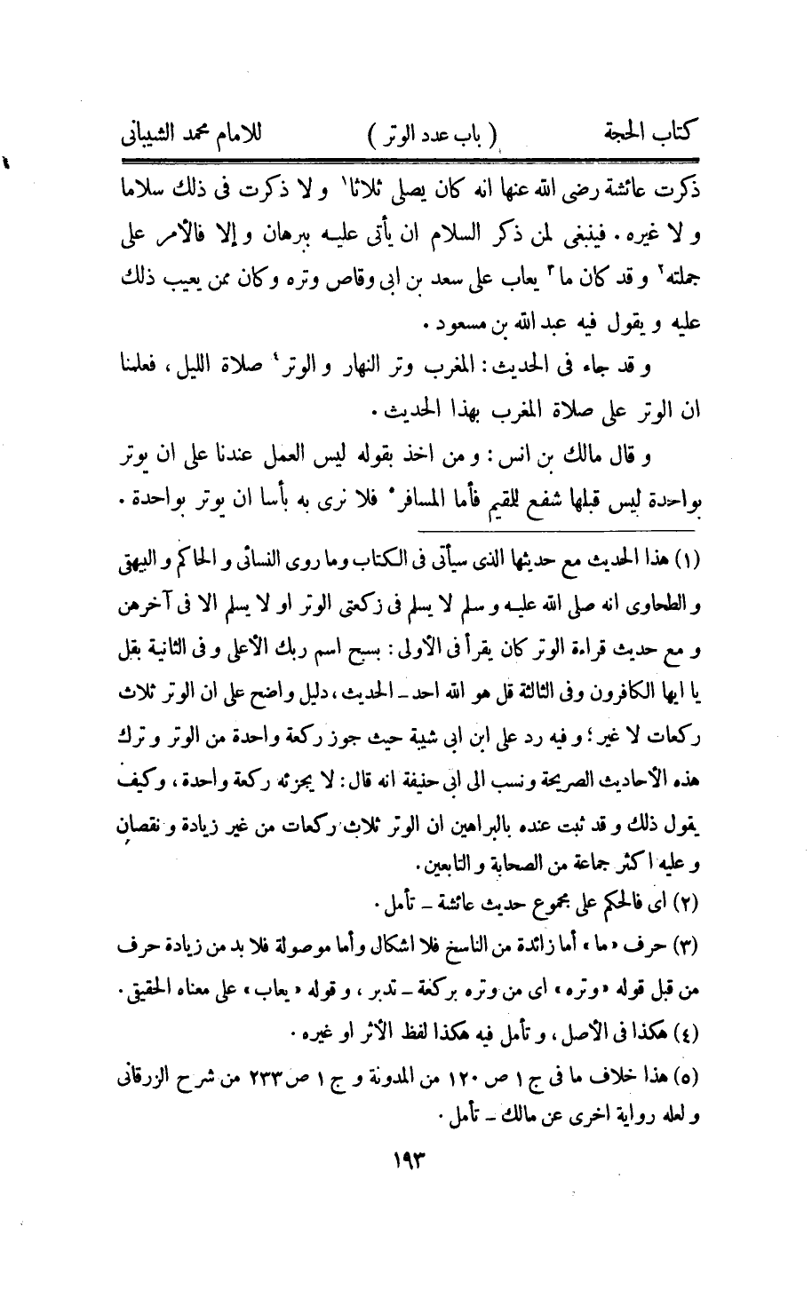 ذكرت عَائِشَة رَضِي الله عَنْهَا انه كَانَ يُصَلِّي ثَلَاثًا وَلَا ذكرت فِي ذَلِك سَلاما وَلَا غَيره فَيَنْبَغِي لمن ذكر السَّلَام ان ياتي عَلَيْهِ ببرهان والا فالامر على جملَته وَقد كَانَ مَا يعاب على سعد بن ابي وَقاص وتره وَكَانَ مِمَّن يعيب ذَلِك عَلَيْهِ وَيَقُول فِيهِ عبد الله بن مَسْعُود