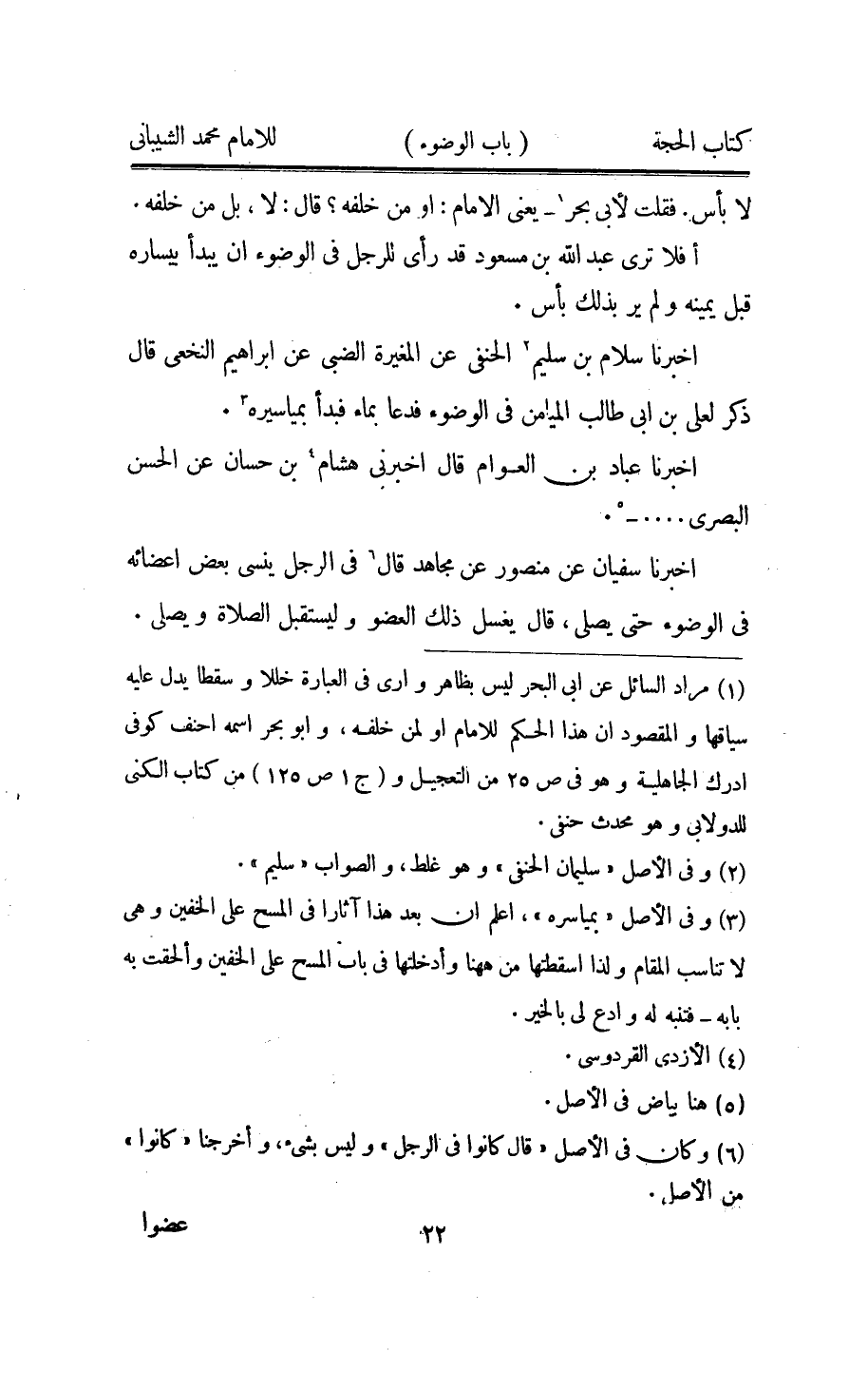 اُخْبُرْنَا سَلام بن سليم الْحَنَفِيّ عَن الْمُغيرَة الضبى عَن ابراهيم النَّخعِيّ قَالَ ذكر لعَلي بن ابي طَالب الميمن فِي الْوضُوء فَدَعَا بِمَاء فَبَدَأَ بمياسيره