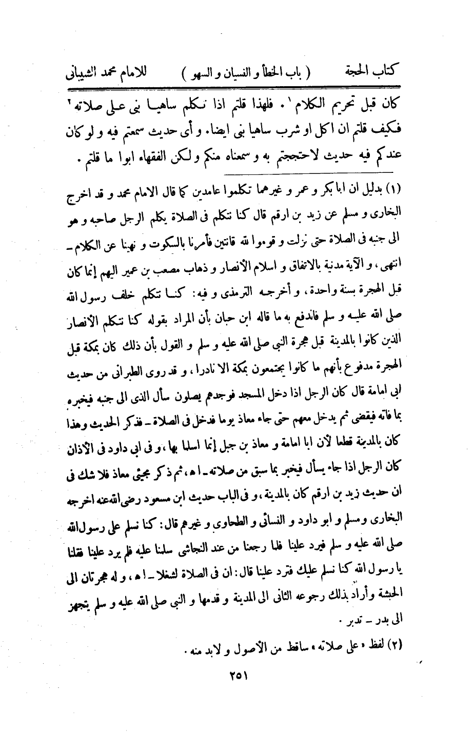 كَانَ قبل تَحْرِيم الْكَلَام فَلهَذَا قُلْتُمْ اذا تكلم سَاهِيا بني على صلَاته فَكيف قُلْتُمْ ان اكل اَوْ شرب سَاهِيا بني ايضا واي حَدِيث سَمِعْتُمْ فِيهِ وَلَو كَانَ عنْدكُمْ فِيهِ حَدِيث لاحتججتم بِهِ وسمعناه مِنْكُم وَلَكِن الْفُقَهَاء ابوا مَا قُلْتُمْ