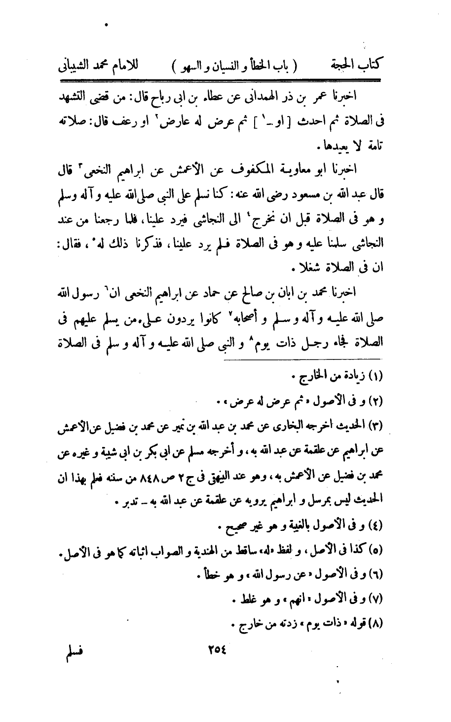 اُخْبُرْنَا ابو مُعَاوِيَة المكفوف عَن الاعمش عَن ابراهيم النَّخعِيّ قَالَ قَالَ عبد الله بن مَسْعُود رَضِي الله عَنهُ كُنَّا نسلم على النَّبِي صلى الله عَلَيْهِ واله وَسلم وَهُوَ فِي الصَّلَاة قبل ان نخرج الى النَّجَاشِيّ فَيرد علينا فَلَمَّا رَجعْنَا من عِنْد النَّجَاشِيّ سلمنَا عَلَيْهِ وَهُوَ فِي الصَّلَاة فَلم يرد علينا فَذَكرنَا ذَلِك لَهُ فَقَالَ ان فِي الصَّلَاة شغلا