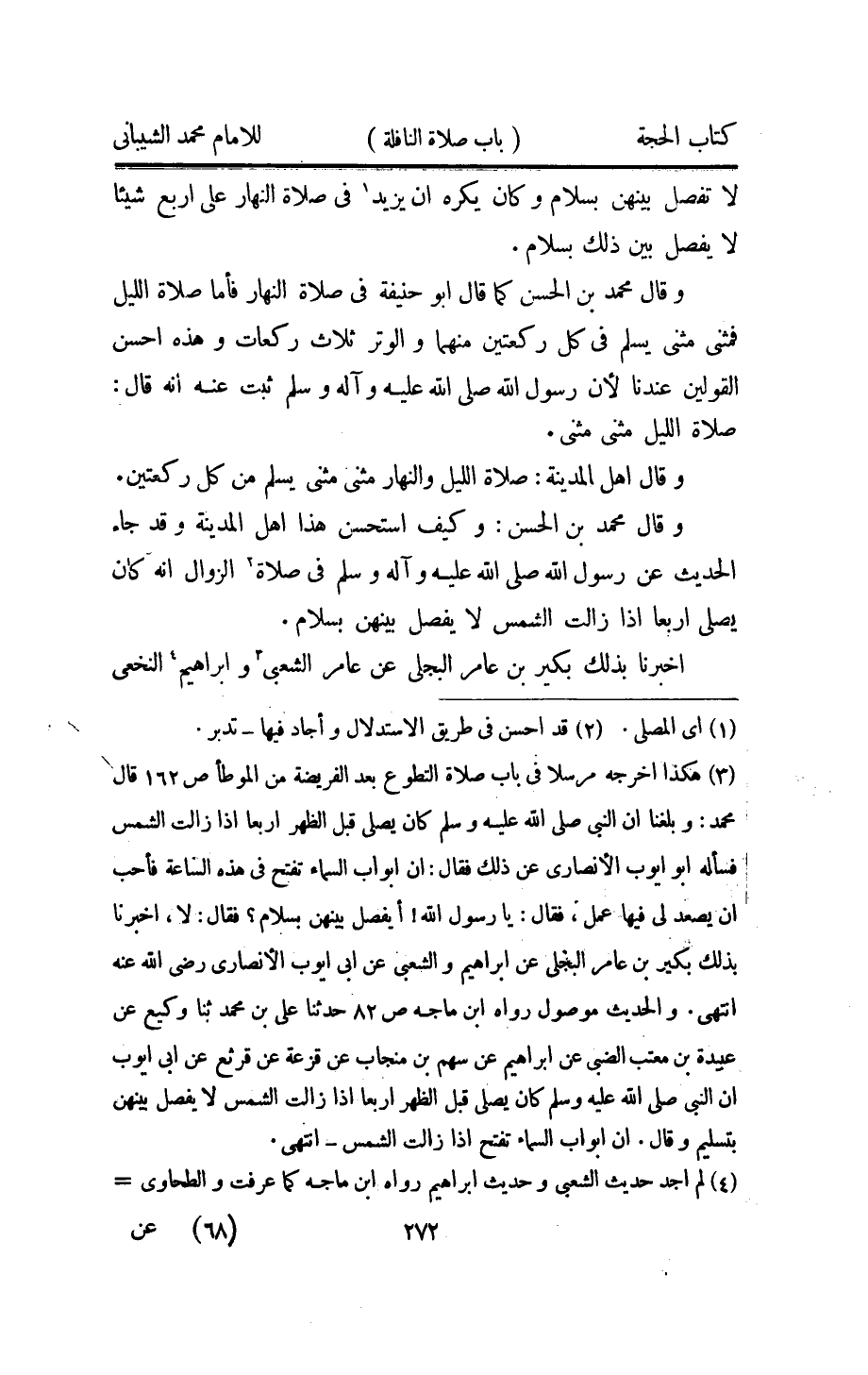 وَقَالَ مُحَمَّد بن الْحسن وَكَيف اسْتحْسنَ هَذَا اهل الْمَدِينَة وَقد جَاءَ الحَدِيث عَن رَسُول الله صلى الله عَلَيْهِ واله وَسلم فِي صَلَاة الزَّوَال انه كَانَ يُصَلِّي اربعا اذا زَالَت الشَّمْس لَا يفصل بَينهُنَّ بِسَلام