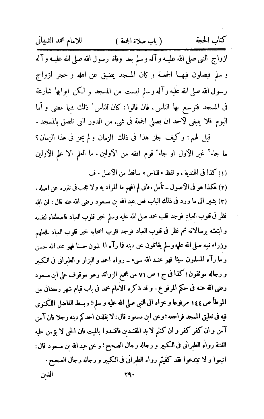 أَزوَاج النَّبِي صلى الله عَلَيْهِ واله وَسلم بعد وَفَاة رَسُول الله عَلَيْهِ واله وَسلم فيصلون فِيهَا الْجُمُعَة وَكَانَ الْمَسْجِد يضيق عَن أَهله وَحجر أَزوَاج رَسُول الله صلى الله عَلَيْهِ واله وَسلم لَيست من الْمَسْجِد وَلَكِن أَبْوَابهَا شارعة فِي الْمَسْجِد فتوسع بهَا النَّاس فان قَالُوا كَانَ للنَّاس ذَلِك فِيمَا مضى وَأما الْيَوْم فَلَا يَنْبَغِي لأحد أَن يُصَلِّي الْجُمُعَة فِي شئ من الدّور الَّتِي تلصق بِالْمَسْجِدِ