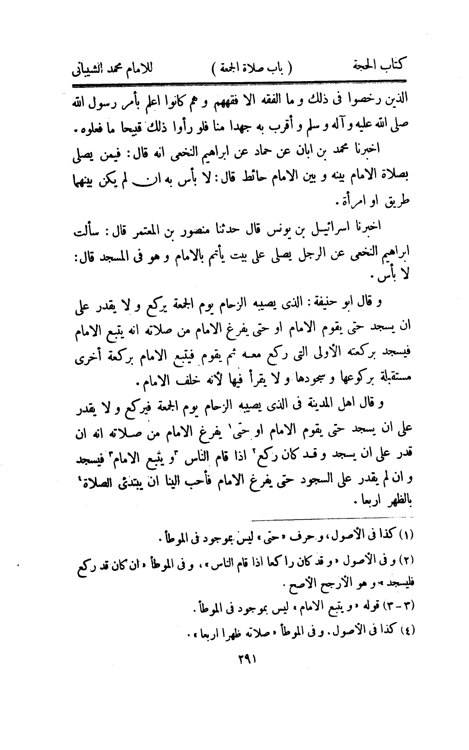 وَقَالَ أهل الْمَدِينَة فِي الَّذِي يُصِيبهُ الزحام يَوْم الْجُمُعَة فيركع وَلَا يقدر على أَن يسْجد حَتَّى يقوم الإِمَام أَو حَتَّى يفرغ الإِمَام من صلَاته أَنه أَن قدر على أَن يسْجد وَقد كَانَ ركع إِذا قَامَ النَّاس وَيتبع الإِمَام فَيسْجد وَأَن لم يقدر على السُّجُود حَتَّى يفرغ الْأَمَام فَأحب إِلَيْنَا أَن يَبْتَدِئ الصَّلَاة بِالظّهْرِ أَرْبعا
