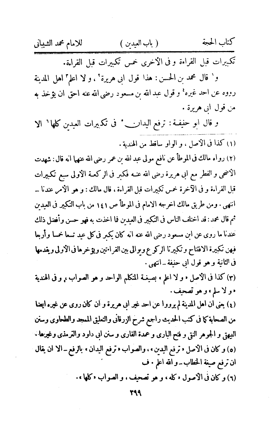 وَقَالَ ابو حنيفَة ترفع اليدان فِي تَكْبِيرَات الْعِيدَيْنِ كلهَا الا