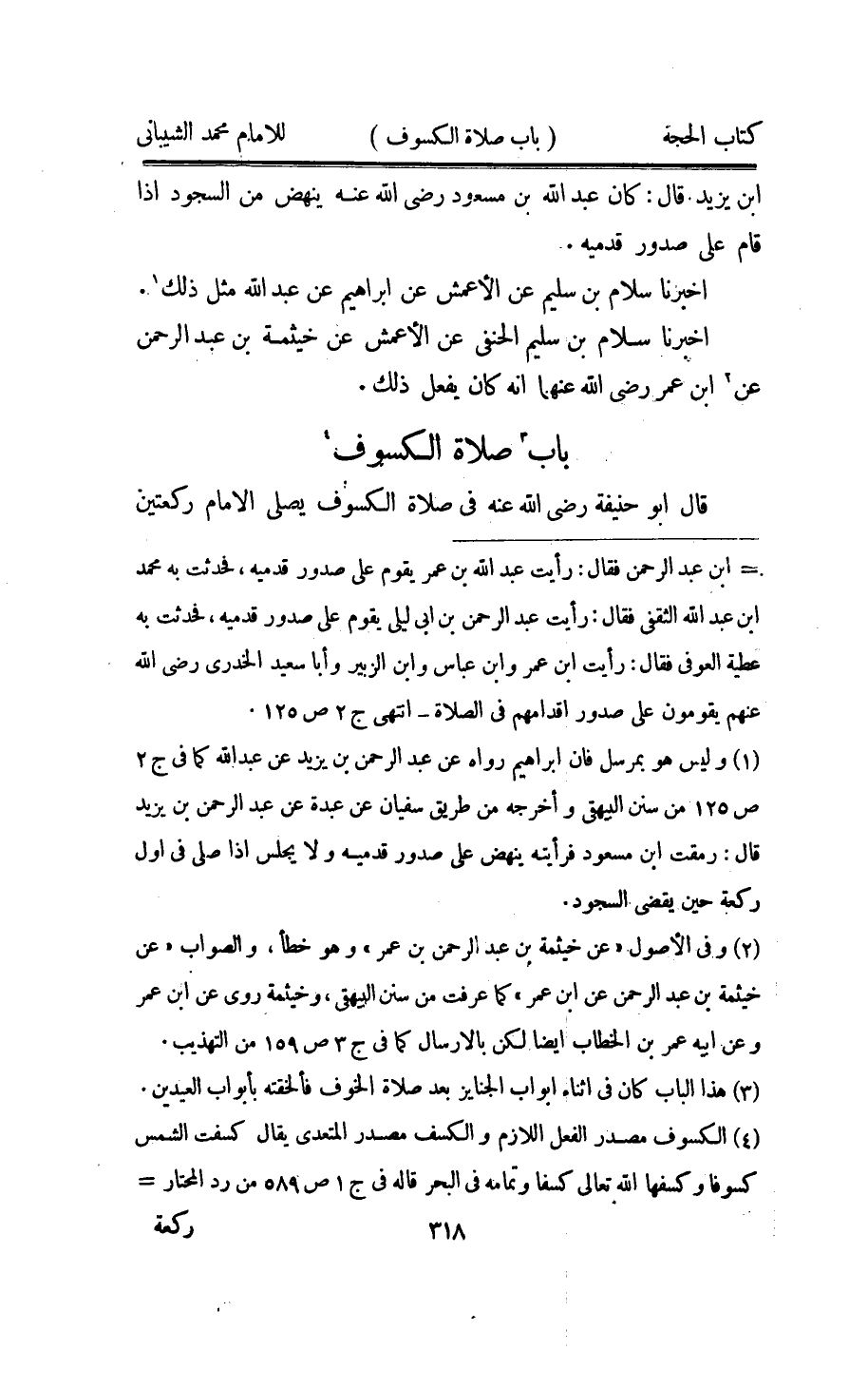 قَالَ أَبُو حنيفَة رَضِي الله عَنهُ فِي صَلَاة الْكُسُوف يُصَلِّي الْأَمَام رَكْعَتَيْنِ