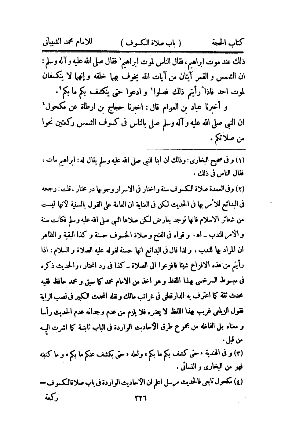 واخبرنا عباد بن الْعَوام قَالَ اُخْبُرْنَا حجاج بن ارطاة عَن مَكْحُول ان النَّبِي صلى الله عَلَيْهِ واله وَسلم صلى بِالنَّاسِ فِي كسوف الشَّمْس رَكْعَتَيْنِ نَحوا من صَلَاتكُمْ