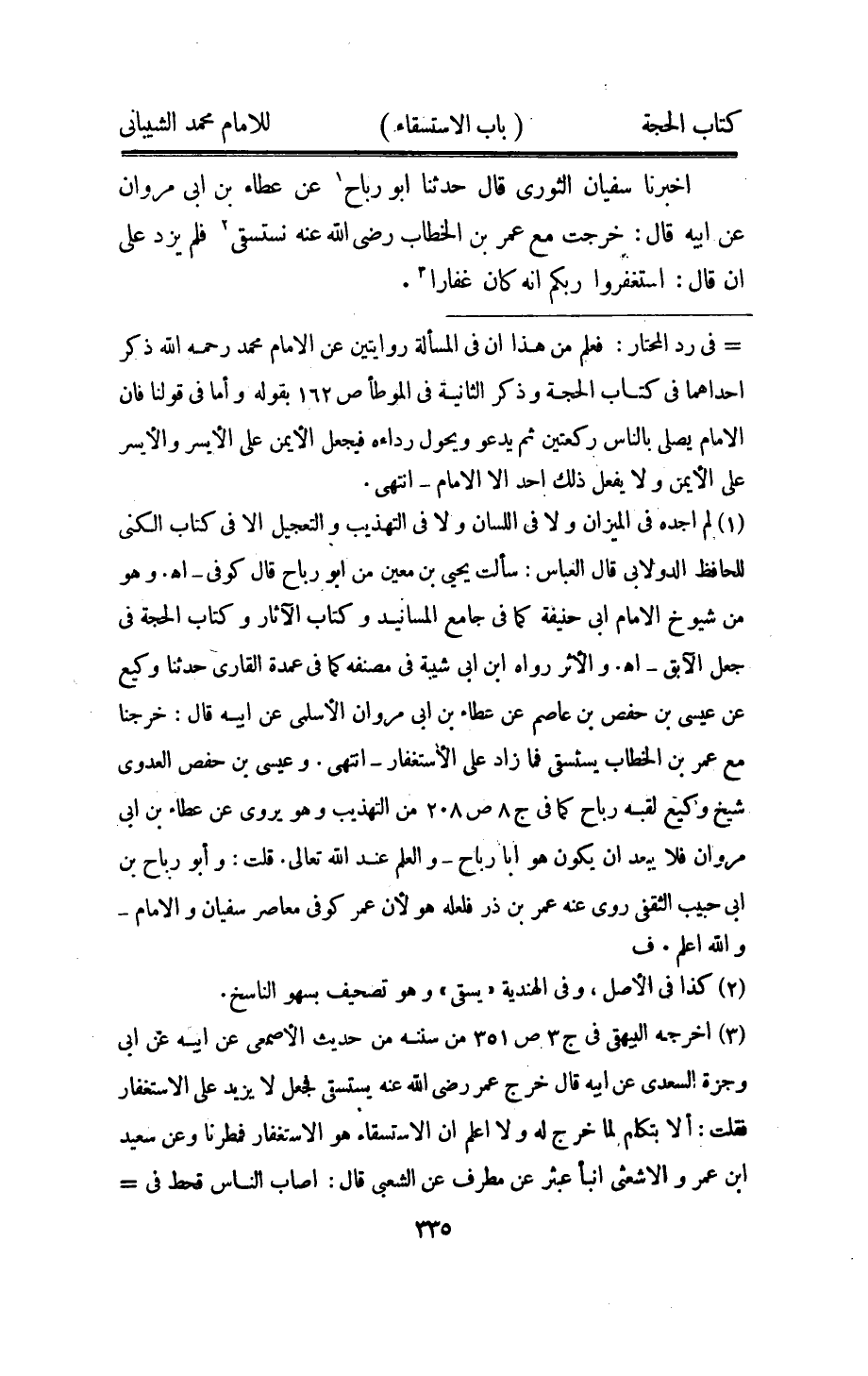 اُخْبُرْنَا سُفْيَان الثَّوْريّ قَالَ حَدثنَا ابو رَبَاح عَن عَطاء بن ابي مَرْوَان عَن ابيه قَالَ خرجت مَعَ عمر بن الْخطاب رَضِي الله عَنهُ نستسقي فَلم يزدْ على ان قالو اسْتَغْفرُوا ربكُم انه كَانَ غفارًا