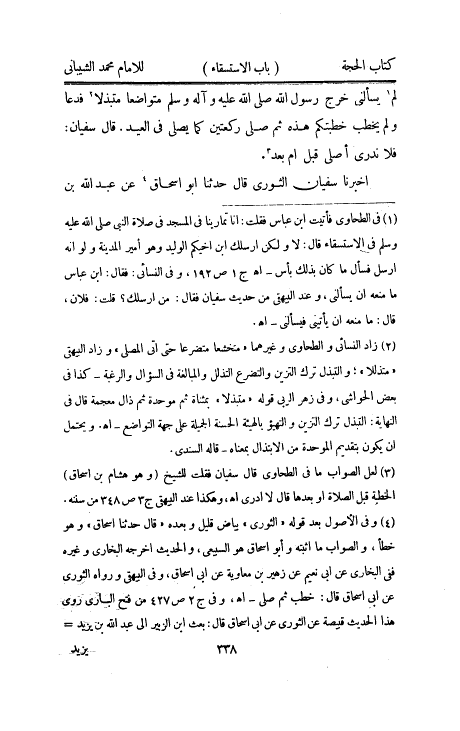 لم يسألني خرج رَسُول الله صلى الله عَلَيْهِ واله وَسلم متواضعا متبذلا فَدَعَا وَلم يخْطب خطبتكم هَذِه ثمَّ صلى رَكْعَتَيْنِ كَمَا يُصَلِّي فِي الْعِيد قَالَ سُفْيَان فَلَا نَدْرِي اصلى قبل ام بعد