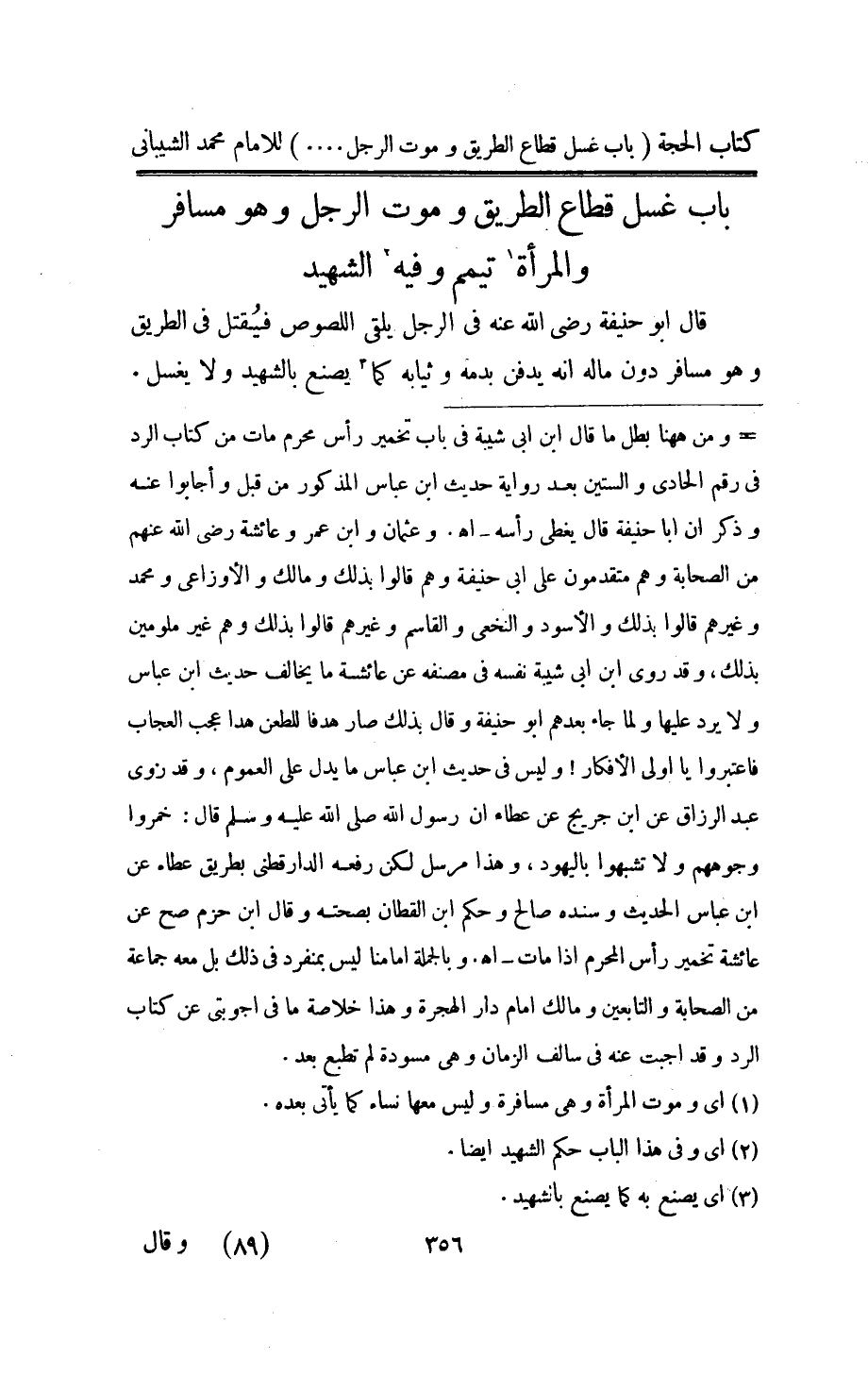 قَالَ ابو حنيفَة رَضِي الله عَنهُ فِي الرجل يلقى اللُّصُوص فَيقْتل فِي الطَّرِيق وَهُوَ مُسَافر دون مَاله انه يدْفن بدمه وثيابه كَمَا يصنع بالشهيد وَلَا يغسل