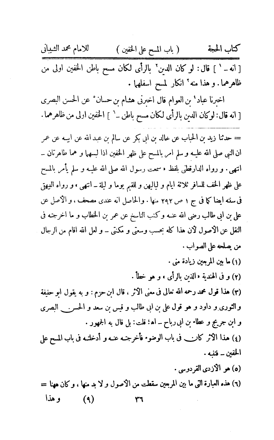 اُخْبُرْنَا عباد بن الْعَوام قَالَ اخبرني هِشَام بن حسان عَن الْحسن الْبَصْرِيّ (انه قَالَ لَو كَانَ الدّين بالراي لَكَانَ مسح بَاطِن) الْخُفَّيْنِ اولى من ظاهرهما