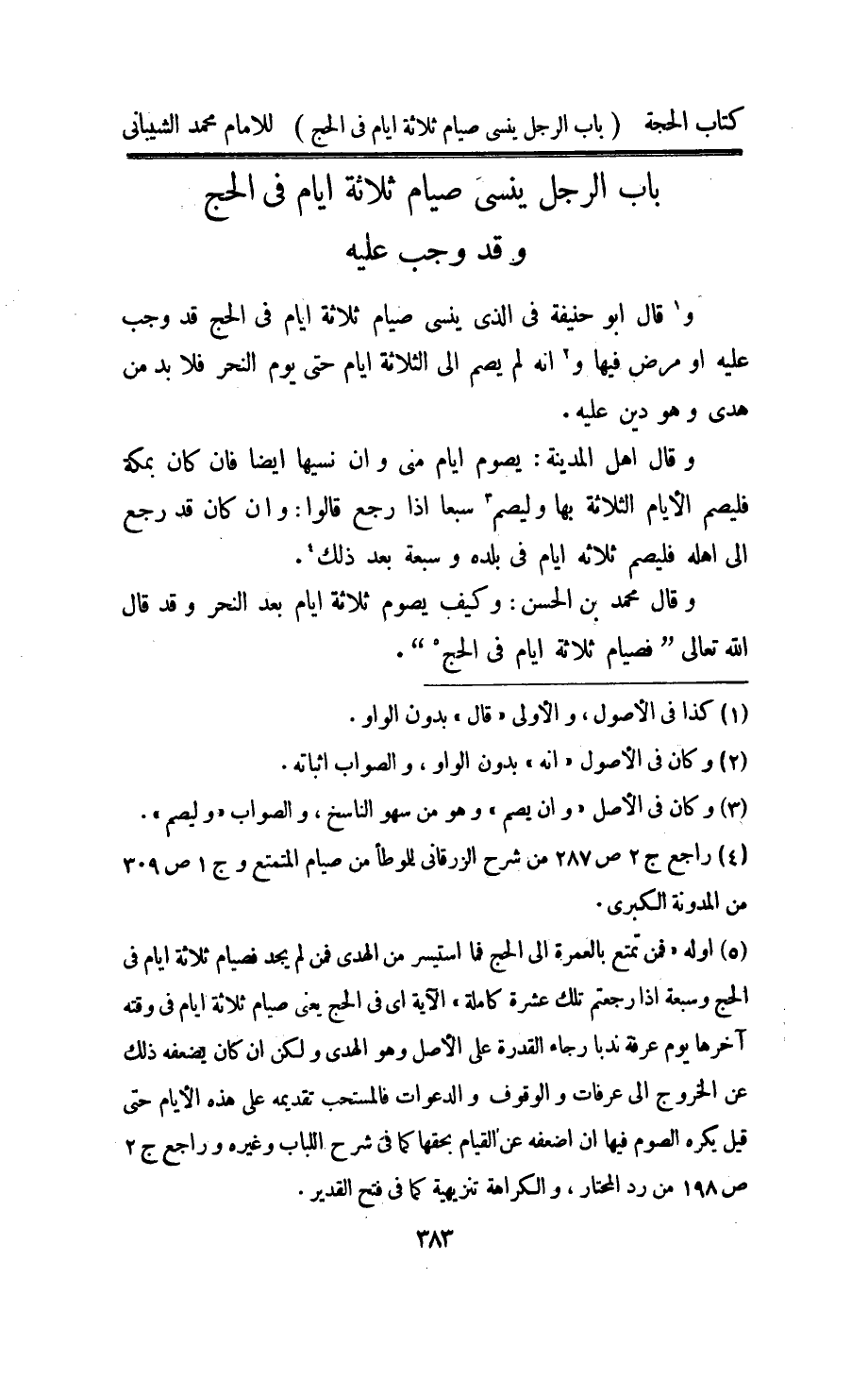 وَقَالَ مُحَمَّد بن الْحسن وَكَيف يَصُوم ثَلَاثَة ايام بعد النَّحْر وَقد قَالَ الله تَعَالَى {فَصِيَام ثَلَاثَة أَيَّام فِي الْحَج}