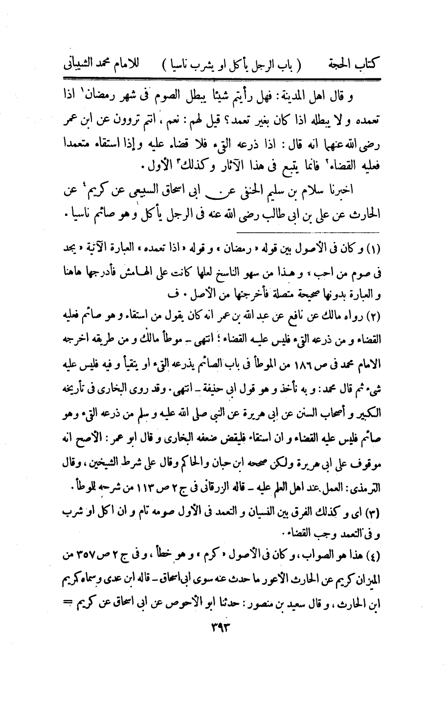 اُخْبُرْنَا سَلام بن سليم الْحَنَفِيّ عَن ابي اسحاق السبيعِي عَن كريم عَن الْحَارِث عَن عَليّ بن ابي طَالب رَضِي الله عَنهُ فِي الرجل يَأْكُل وَهُوَ صَائِم نَاسِيا
