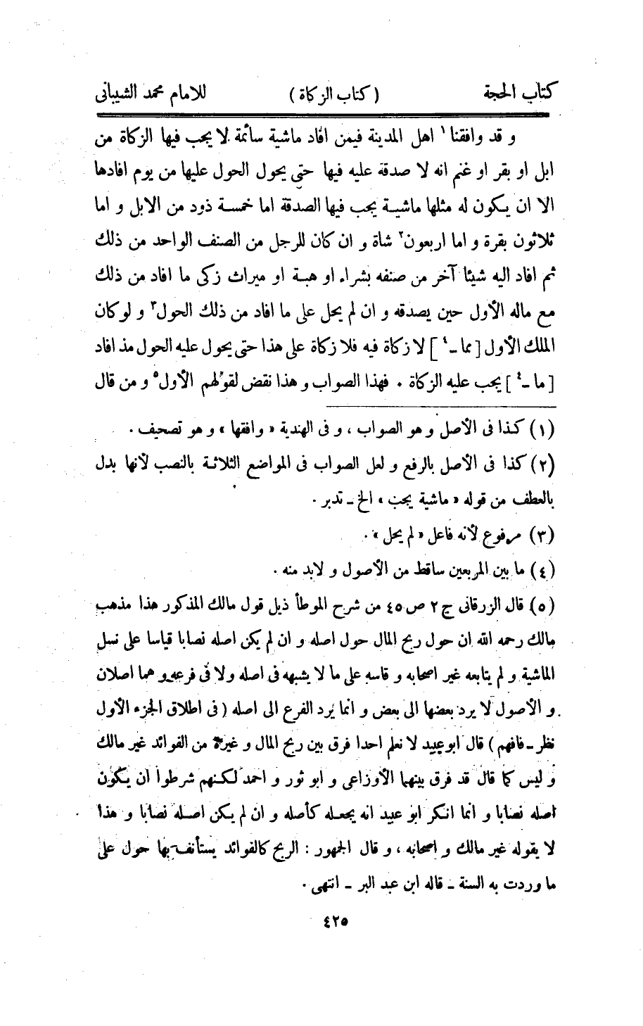 وَقد وَافَقنَا اهل الْمَدِينَة فِيمَن افاد مَاشِيَة سَائِمَة لَا يجب فِيهَا الزَّكَاة من ابل اَوْ بقرًا اَوْ غنم انه لَا صَدَقَة عَلَيْهِ فِيهَا حَتَّى يحول الْحول عَلَيْهَا من يَوْم افادها الا ان يكون لَهُ مثلهَا مَاشِيَة يجب فِيهَا الصَّدَقَة اما خَمْسَة ذود من الابل واما ثَلَاثُونَ بقرة واما اربعون شَاة وان كَانَ للرجل من الصِّنْف الْوَاحِد من ذَلِك ثمَّ افاد اليه شَيْئا اخر من صنفه بشرَاء اَوْ هبة اَوْ مِيرَاث زكى مَا افاد من ذَلِك مَعَ مَاله الاول حِين يصدقهُ وان لم يحل على مَا افاد من ذَلِك الْحول وَلَو كَانَ الْملك الاولى مِمَّا لَا زَكَاة فِيهِ فَلَا زَكَاة على هَذَا حَتَّى يحول عَلَيْهِ الْحول مذ افاد مَا يجب عَلَيْهِ الزَّكَاة فها الصَّوَاب وَهَذَا نقض لقَولهم الاول وَمن قَالَ