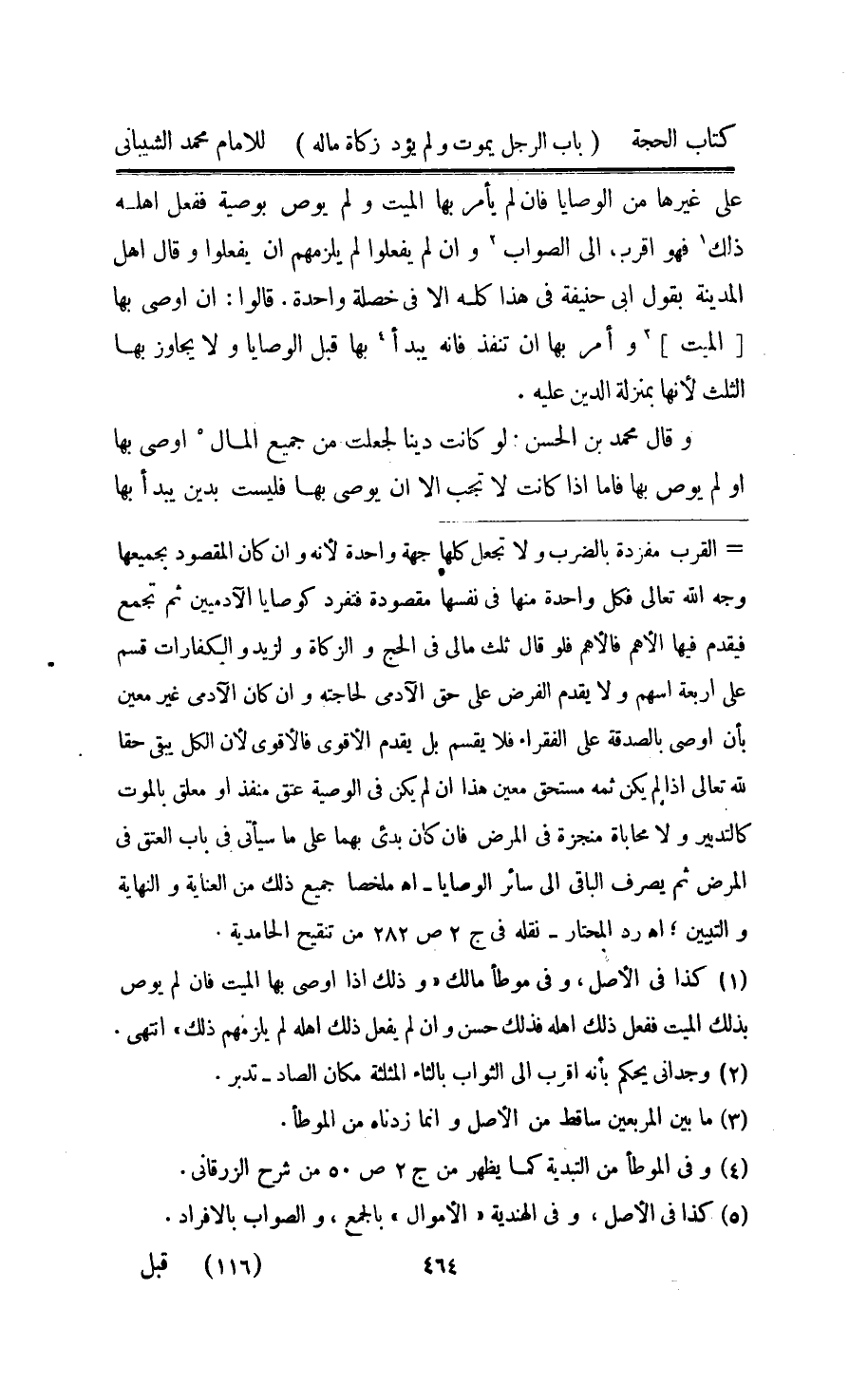 وَقَالَ مُحَمَّد بن الْحسن لَو كَانَت دينا لجعلت من جَمِيع المَال أوصى بهَا أَو لم يوص بهَا فَأَما إِذا كَانَت لَا تجب الأ أَن يُوصي بهَا فَلَيْسَتْ بدين يبْدَأ بهَا
