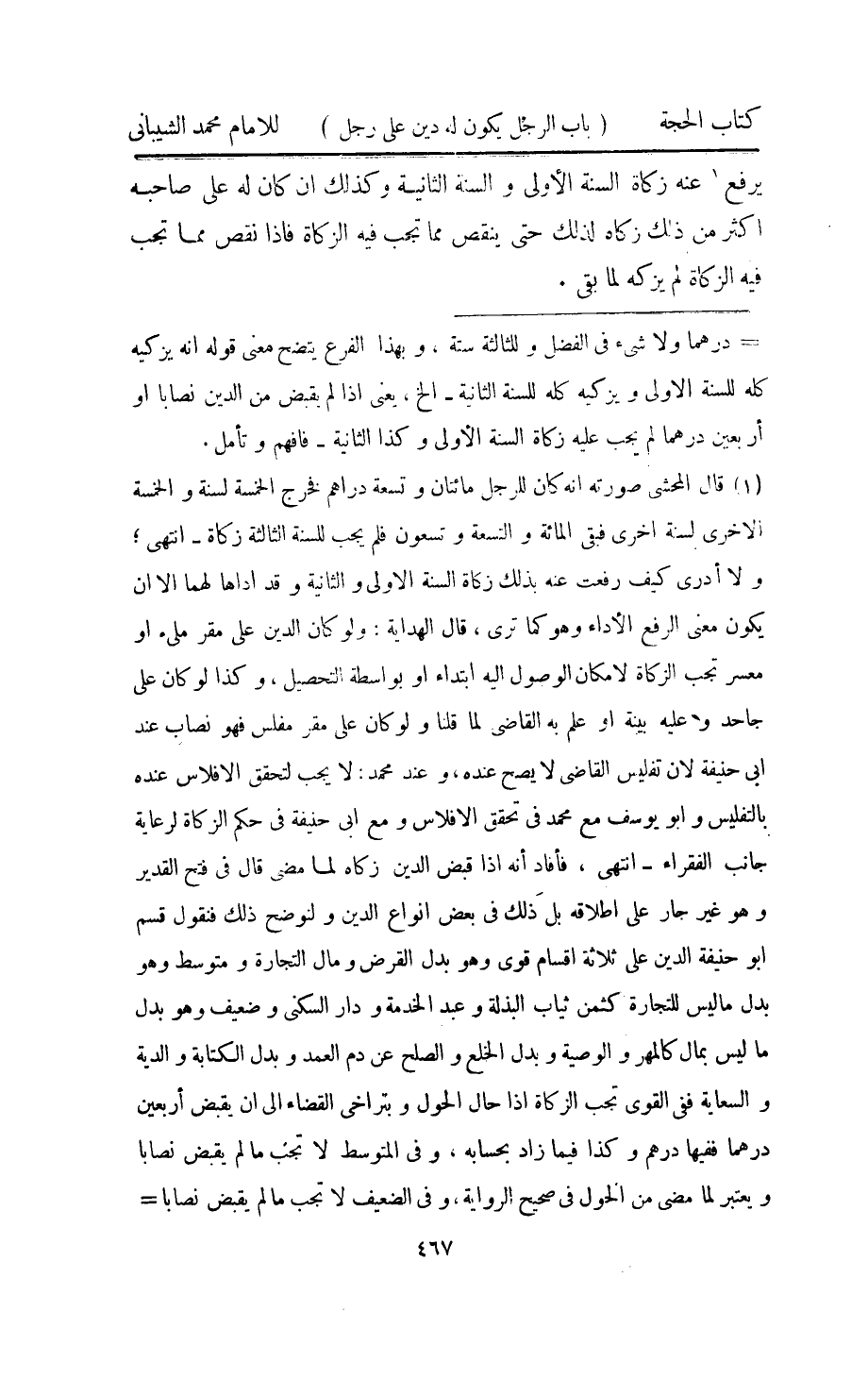 يرفع عَنهُ زَكَاة السّنة الاولى وَالسّنة الثَّانِيَة وَكَذَلِكَ ان كَانَ لَهُ على صَاحبه اكثر من ذَلِك زَكَاة لذَلِك حَتَّى ينقص مِمَّا تجب فِيهِ الزَّكَاة فاذا نقص مِمَّا تجب فِيهِ الزَّكَاة لم يزكه لما بَقِي