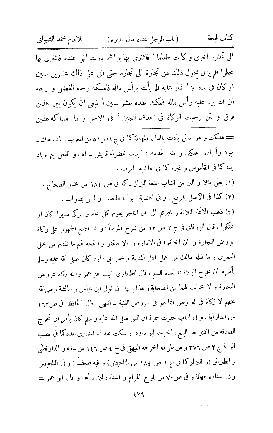 الى تِجَارَة اخرى وَكَانَت طَعَاما فَاشْترى بهَا بزا ثمَّ بارت الَّتِي عِنْده فَاشْترى بهَا عطر فَلَمَّا يزل يحول ذَلِك من تِجَارَة الى تِجَارَة حَتَّى اتى على ذَلِك عشْرين سِنِين اَوْ كَانَ فِي يَده بز فبار عَلَيْهِ فَلم يَأْتِ براس مَاله فامسكه رَجَاء الْفضل ورجاء ان الله يرد عَلَيْهِ رَأس مَاله فَمَكثَ عِنْده عشر سِنِين اينبغي ان يكون بَين هذَيْن فرق وَلَئِن وَجَبت الزَّكَاة فِي احدهما لتجبن فِي الاخر وَمَا امساكه هذَيْن