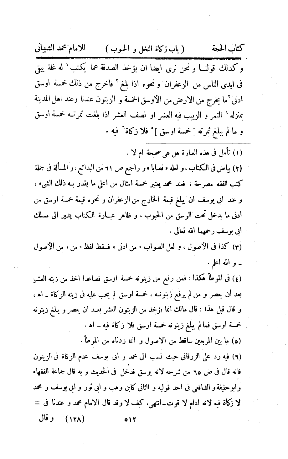 وَكَذَلِكَ قَوْلنَا وَنحن نرى ايضا ان يُؤْخَذ الصَّدَقَة عَمَّا يكْتب لَهُ غلَّة يبْقى فِي ايد النَّاس من الزَّعْفَرَان وَنَحْو اذا بلغ فَاخْرُج من ذَلِك خَمْسَة اوسق ادنى مَا يخرج من الارض من الاوسق الْخَمْسَة وَالزَّيْتُون عندنَا وَعند اهل الْمَدِينَة بِمَنْزِلَة التَّمْر وَالزَّبِيب فِيهِ الْعشْر اَوْ نصف الْعشْر اذا بلغت ثَمَرَته خَمْسَة اوسق وَمَا لم يبلغ ثَمَرَته خَمْسَة اوسق فَلَا زَكَاة فِيهِ
