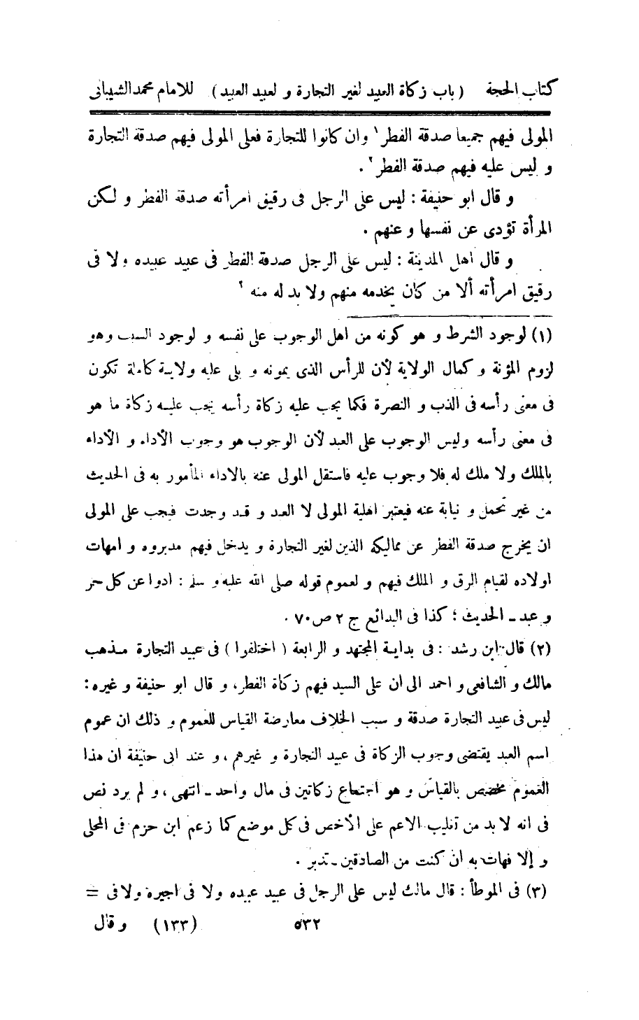 وَقَالَ اهل الْمَدِينَة لَيْسَ على الرجل صَدَقَة الْفطر فِي عبيد عبيده وَلَا فِي رَقِيق امْرَأَته الا من كَانَ يَخْدمه مِنْهُم ولابد لَهُ مِنْهُ