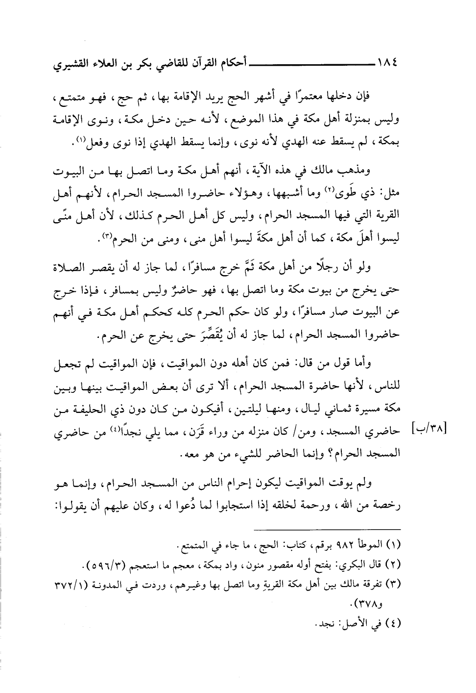 (¬٣) تفرقة مالك بين أهل مكة القريةِ وما اتصل بها وغيرهم، وردت في المدونة (١/ ٣٧٢ و ٣٧٨).