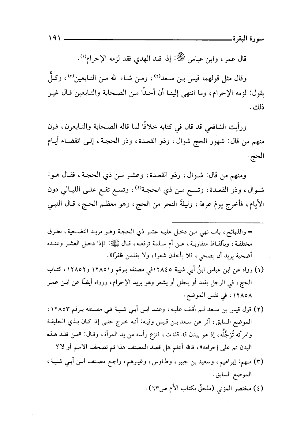 ورأيت الشافعي قد قال في كتابه خلافًا لما قاله الصحابة والتابعون، فإن منهم من قال: شهور الحج شوال، وذو القعدة، وذو الحجة، إلى انقضاء أيام الحج.