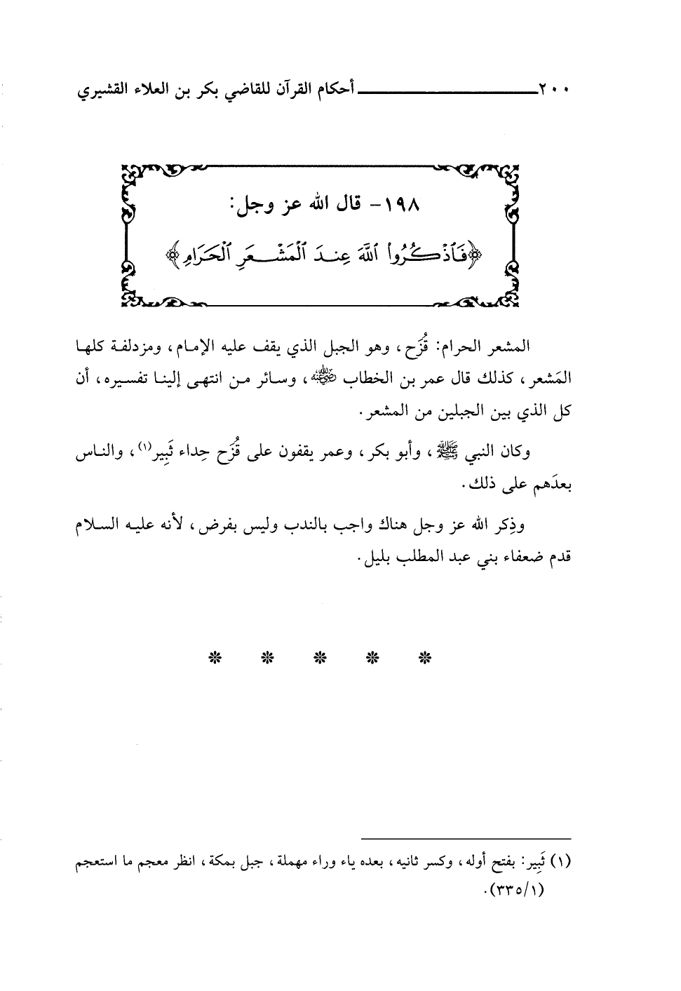 ١٩٨ - قال اللَّه عز وجل: {فَاذْكُرُوا اللَّهَ عِنْدَ الْمَشْعَرِ الْحَرَامِ}