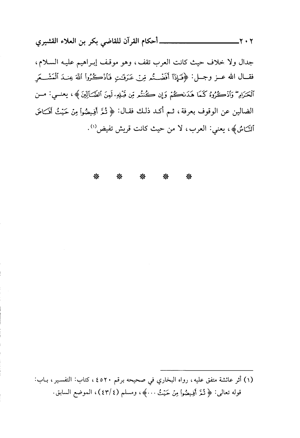 (¬١) أثر عائشة متفق عليه، رواه البخاري في صحيحه برقم ٤٥٢٠، كتاب: التفسير، باب: قوله تعالى: {ثُمَّ أَفِيضُوا مِنْ حَيْثُ. . .}، ومسلم (٤/ ٤٣)، الموضع السابق.