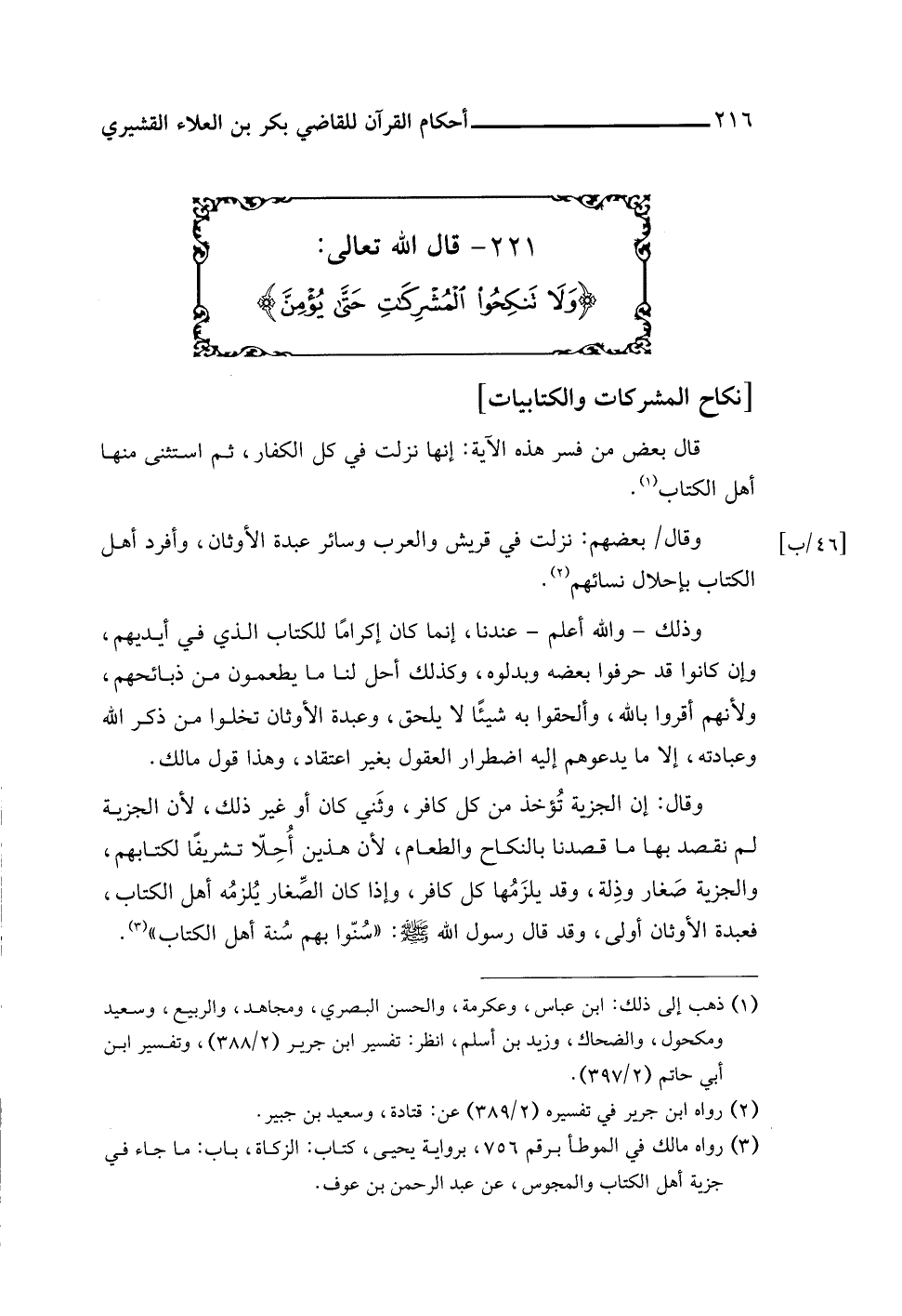 ٢٢١ - قال اللَّه تعالى: {وَلَا تَنْكِحُوا الْمُشْرِكَاتِ حَتَّى يُؤْمِنَّ}