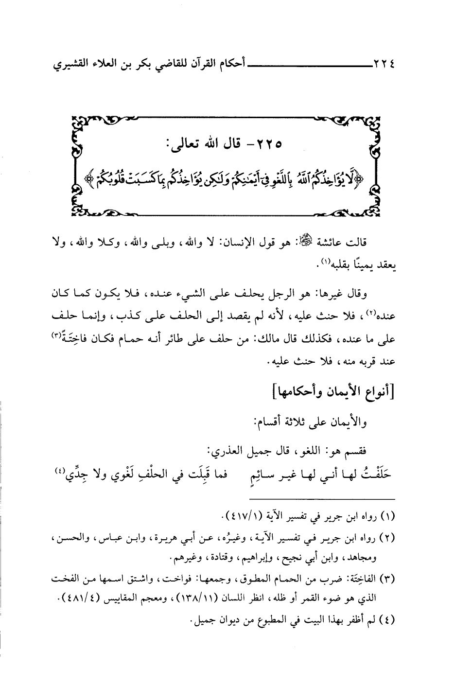 ٢٢٥ - قال اللَّه تعالى: {لَا يُؤَاخِذُكُمُ اللَّهُ بِاللَّغْوِ فِي أَيْمَانِكُمْ وَلَكِنْ يُؤَاخِذُكُمْ بِمَا كَسَبَتْ قُلُوبُكُمْ}