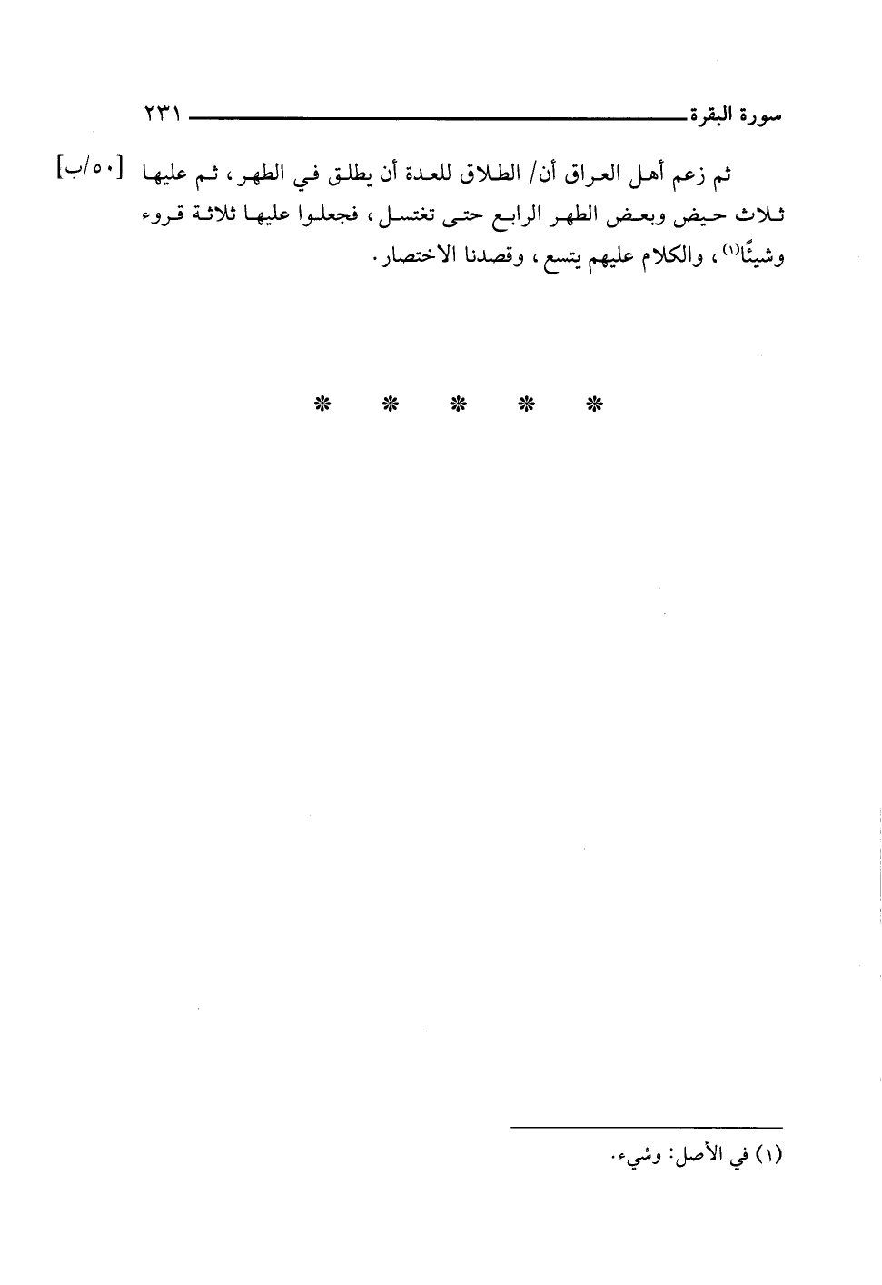 ثم زعم أهل العراق أن الطلاق للعدة أن يطلق في الطهر، ثم عليها ثلاث حيض وبعض الطهر الرابع حتى تغتسل، فجعلوا عليها ثلاثة قروء وشيئًا (¬١)، والكلام عليهم يتسع، وقصدنا الاختصار.