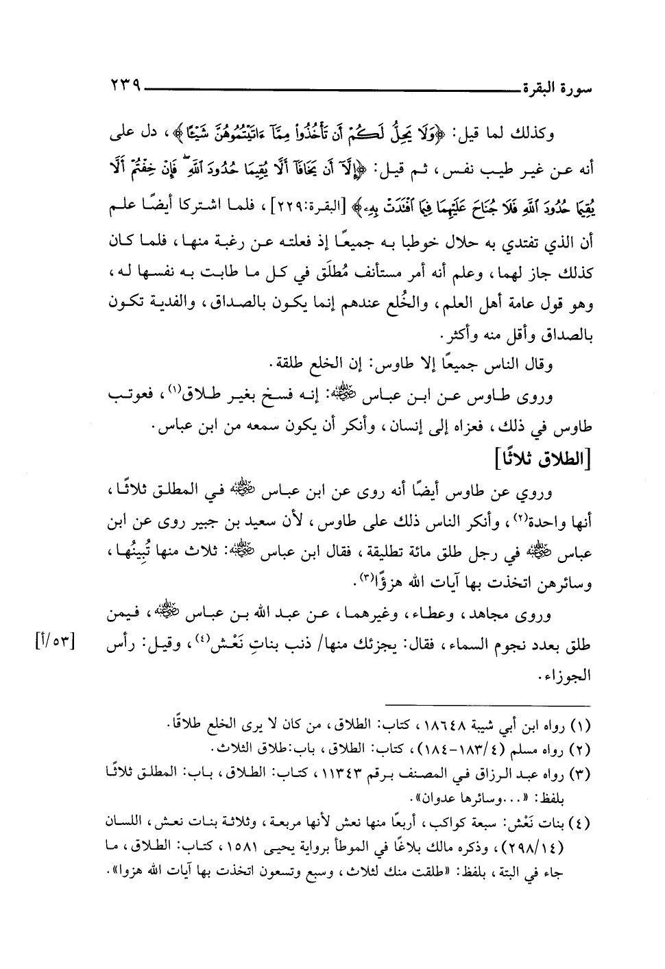 (¬٣) رواه عبد الرزاق في المصنف برقم ١١٣٤، كتاب: الطلاق، باب: المطلق ثلاثًا بلفظ: ". . . وسائرها عدوان".
