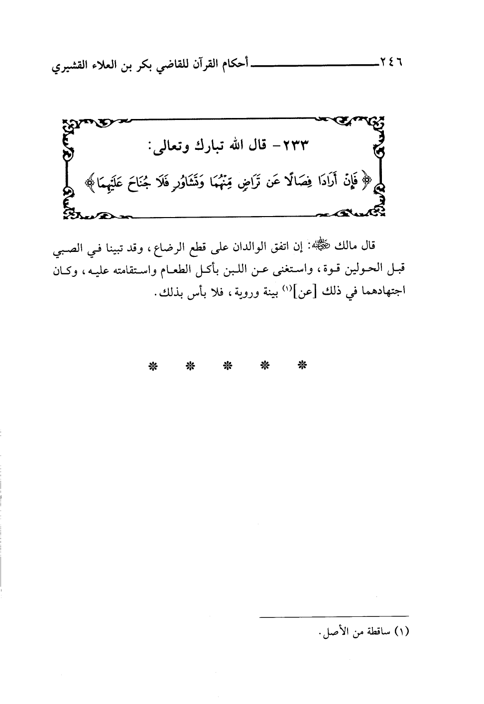 ٢٣٣ - قال اللَّه تبارك وتعالى: {فَإِنْ أَرَادَا فِصَالًا عَنْ تَرَاضٍ مِنْهُمَا وَتَشَاوُرٍ فَلَا جُنَاحَ عَلَيْهِمَا}