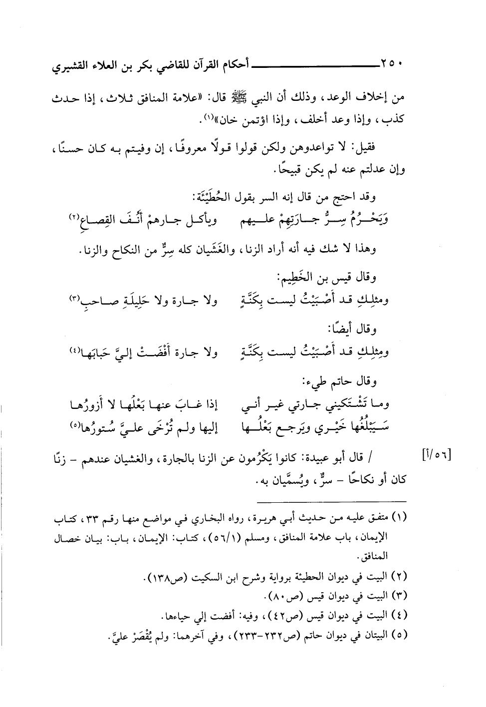 (¬٥) البيتان في ديوان حاتم (ص ٢٣٢ - ٢٣٣)، وفي آخرهما: ولم يُقْصَرْ عليَّ.