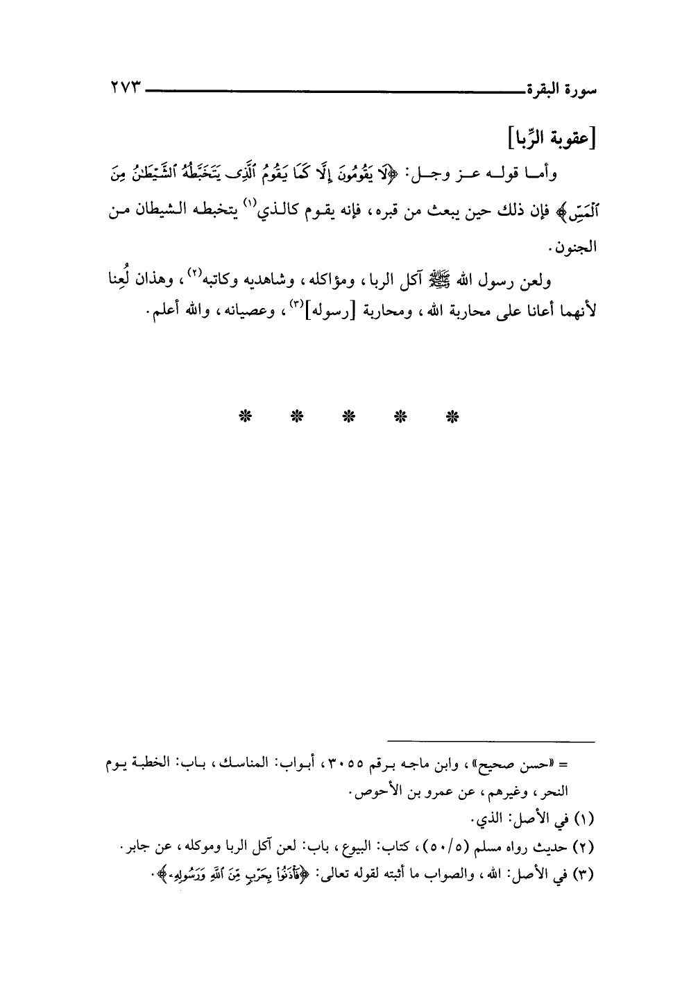 (¬٣) في الأصل: اللَّه، والصواب ما أثبته لقوله تعالى: {فَأْذَنُوا بِحَرْبٍ مِنَ اللَّهِ وَرَسُولِهِ}.