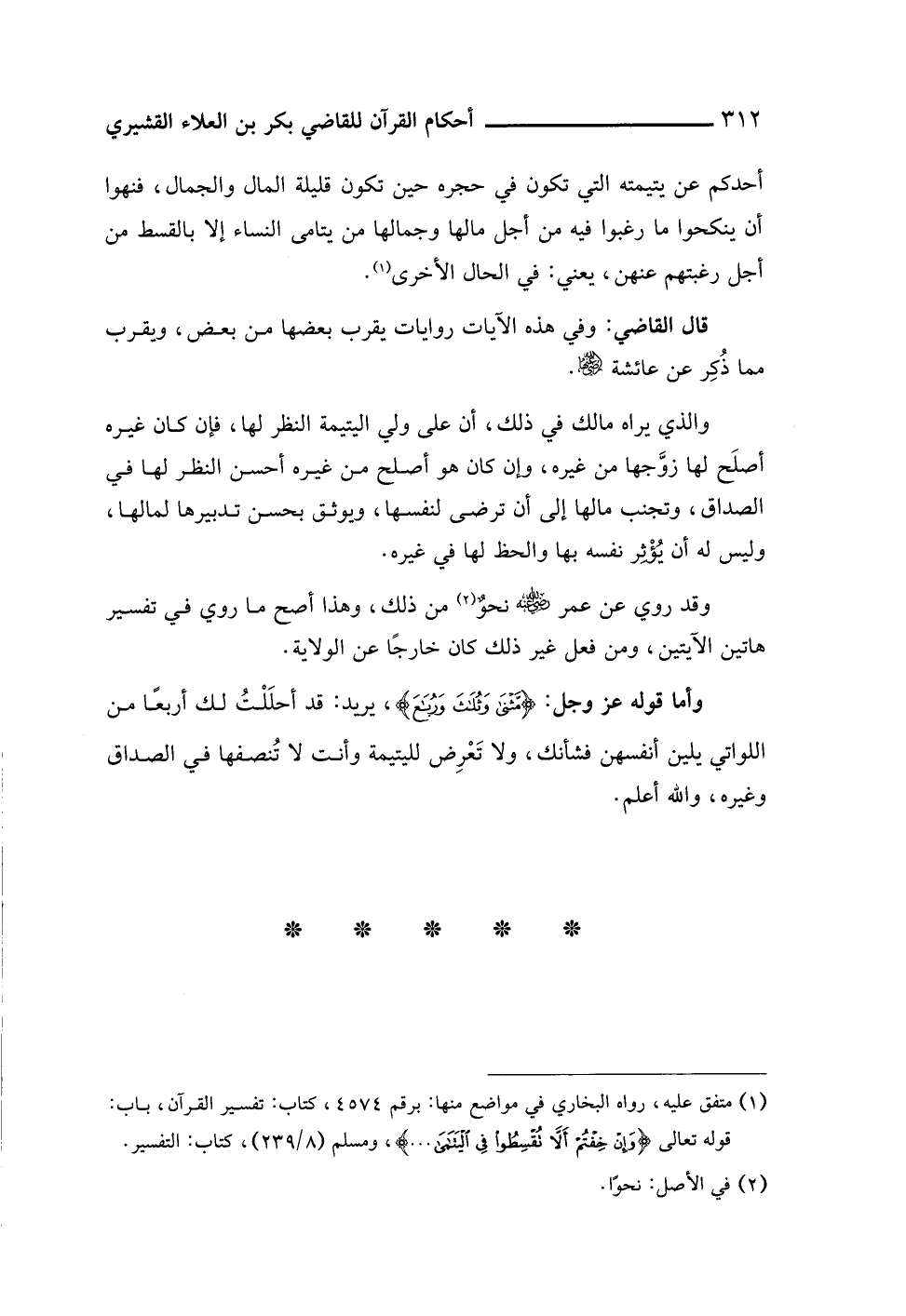 (¬١) متفق عليه، رواه البخاري في مواضع منها: برقم ٤٥٧٤، كتاب: تفسير القرآن، باب: قوله تعالى {وَإِنْ خِفْتُمْ أَلَّا تُقْسِطُوا فِي الْيَتَامَى. . .}، ومسلم (٨/ ٢٣٩)، كتاب: التفسير.