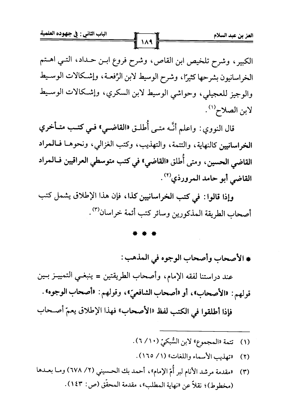 * الأصحاب وأصحاب الوجوه في المذهب: