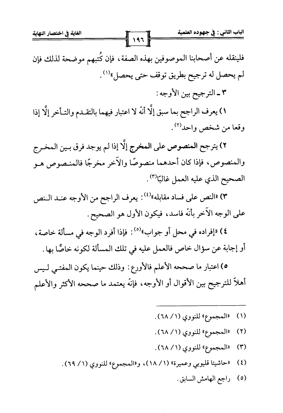 5) اعتبار ما صححه الأعلم فالأورع: وذلك حينما يكون المفتي ليس أهلًا للترجيح بين الأقوال أو الأوجه، فإنّه يعتمد ما صححه الأكثر والأعلم