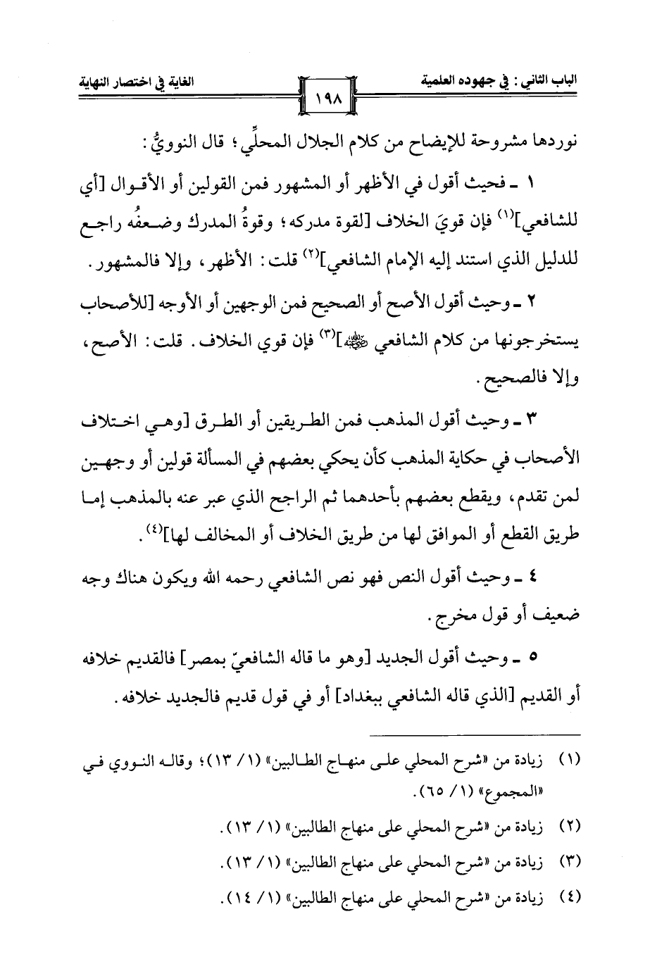 4 - وحيث أقول النص فهو نص الشافعي رحمه الله ويكون هناك وجه ضعيف أو قول مخرج.