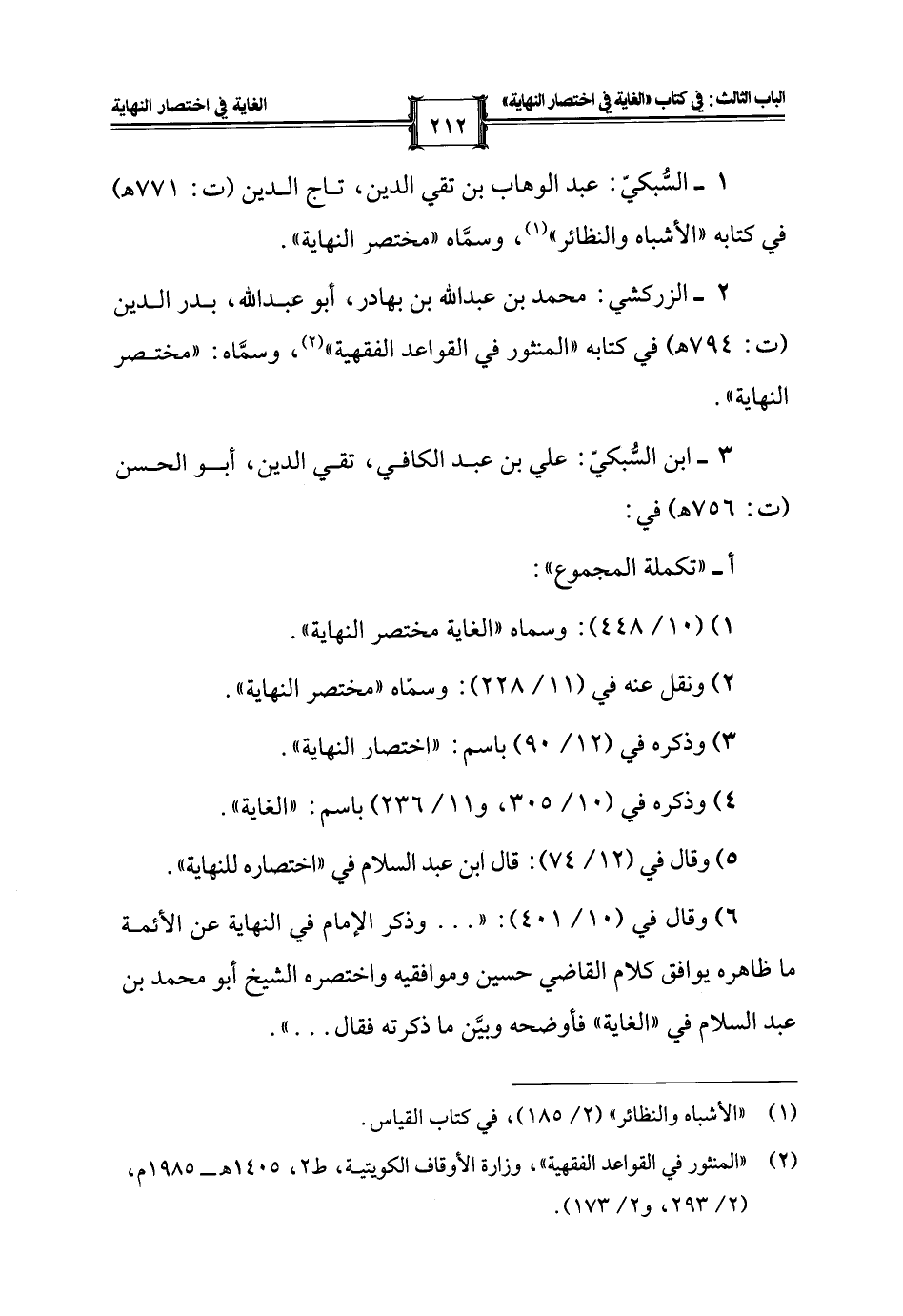 1 - السُّبكيّ: عبد الوهاب بن تقي الدين، تاج الدين (ت: 771 هـ) في كتابه "الأشباه والنظائر" (¬1)، وسمَّاه "مختصر النهاية".