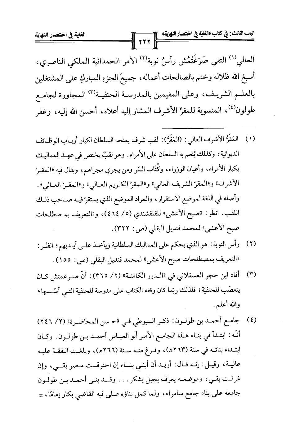 (¬3) أفاد ابن حجر العسقلاني في "الدرر الكامنة" (2/ 365): أنّ صرغمتش كان يتعصّب للحنفيّة؛ فلذلك ربّما كان وقفه الكتاب على مدرسة للحنفية التي أسّسها؛ والله أعلم.