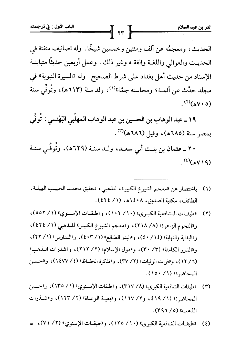 (¬1) باختصار عن "معجم الشيوخ الكبير"، للذهبي، تحقيق محمد الحبيب الهيلة، الطائف، مكتبة الصديق، 1408 هـ، (1/ 424).