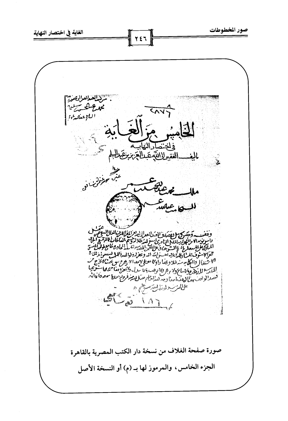 صورة صفحة الغلاف من نسخة دار الكتب المصرية بالقاهرة